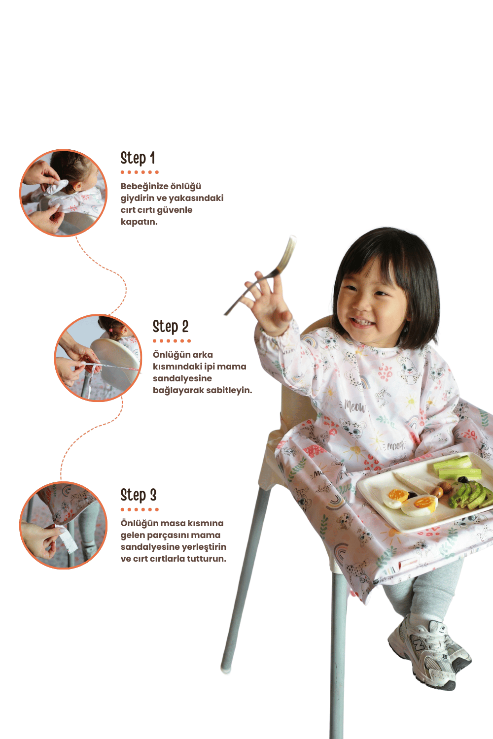 Neşeli Leoparlar Uzun Kollu Mama Sandalyesi Önlüğü