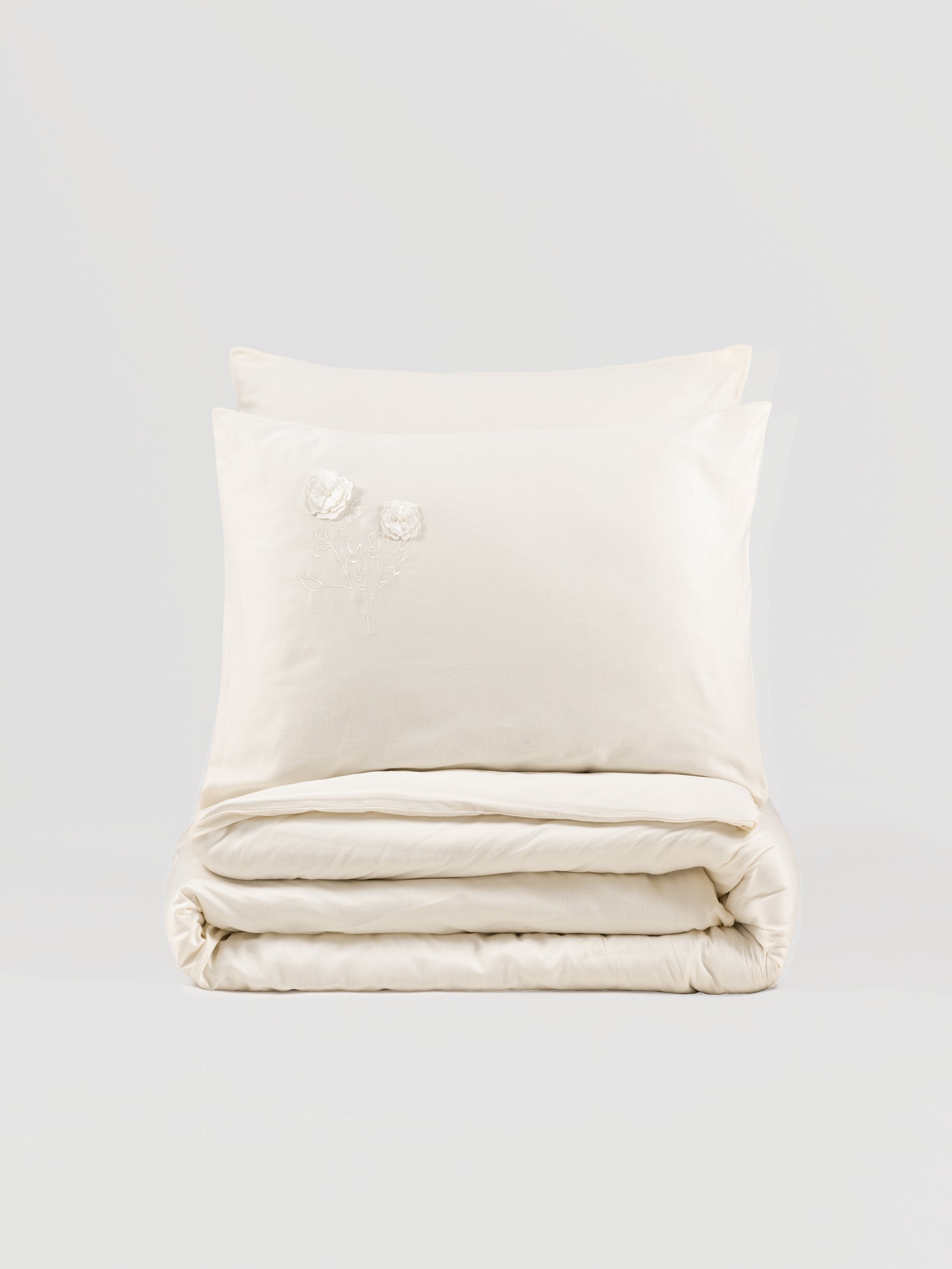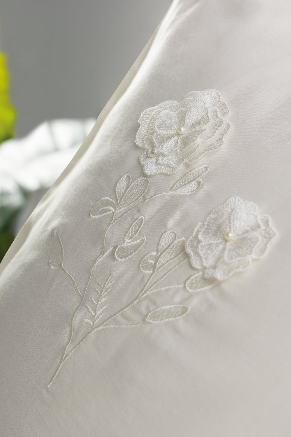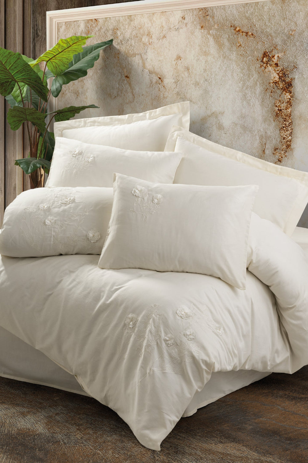 3d Nakışlı Saten Çift Kişilik Nevresim Takımı Pure Ekru