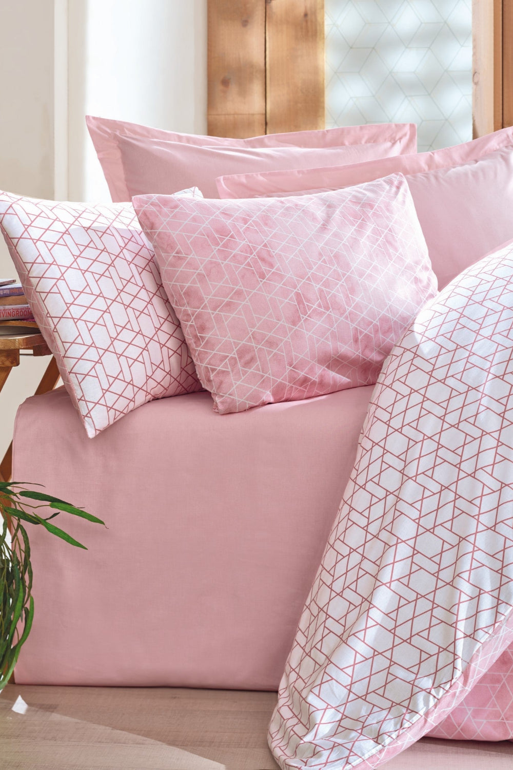 Minimal Çift Kişilik Lastikli Çarşaflı Nevresim Takımı Best Pembe