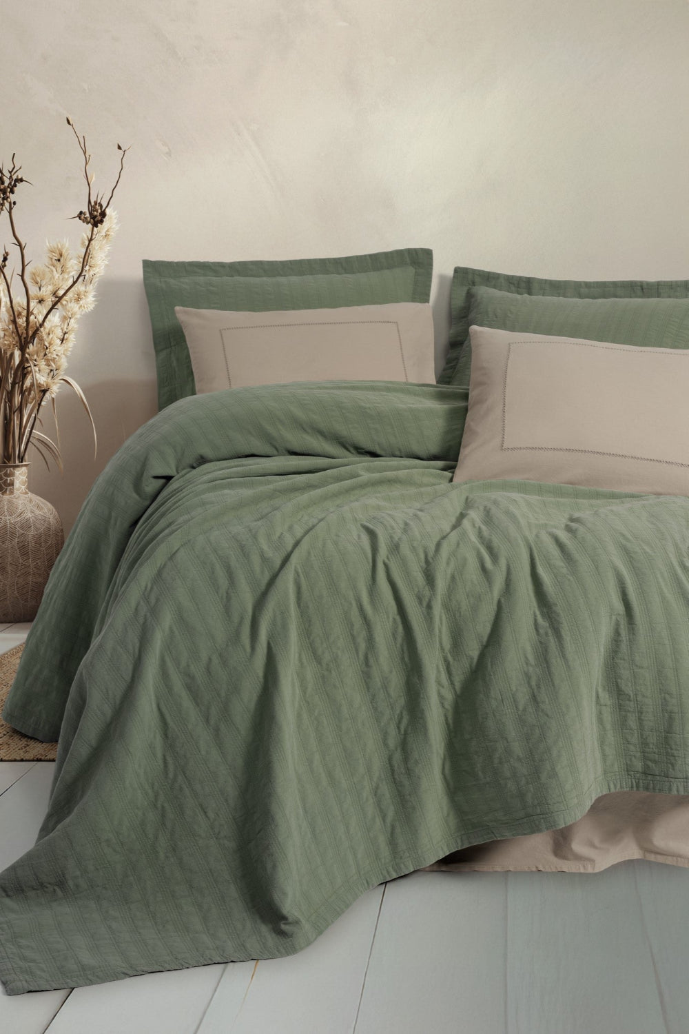 Natura Çift Kişilik Yatak Örtüsü-Pike Takımı Vilo Yeşil