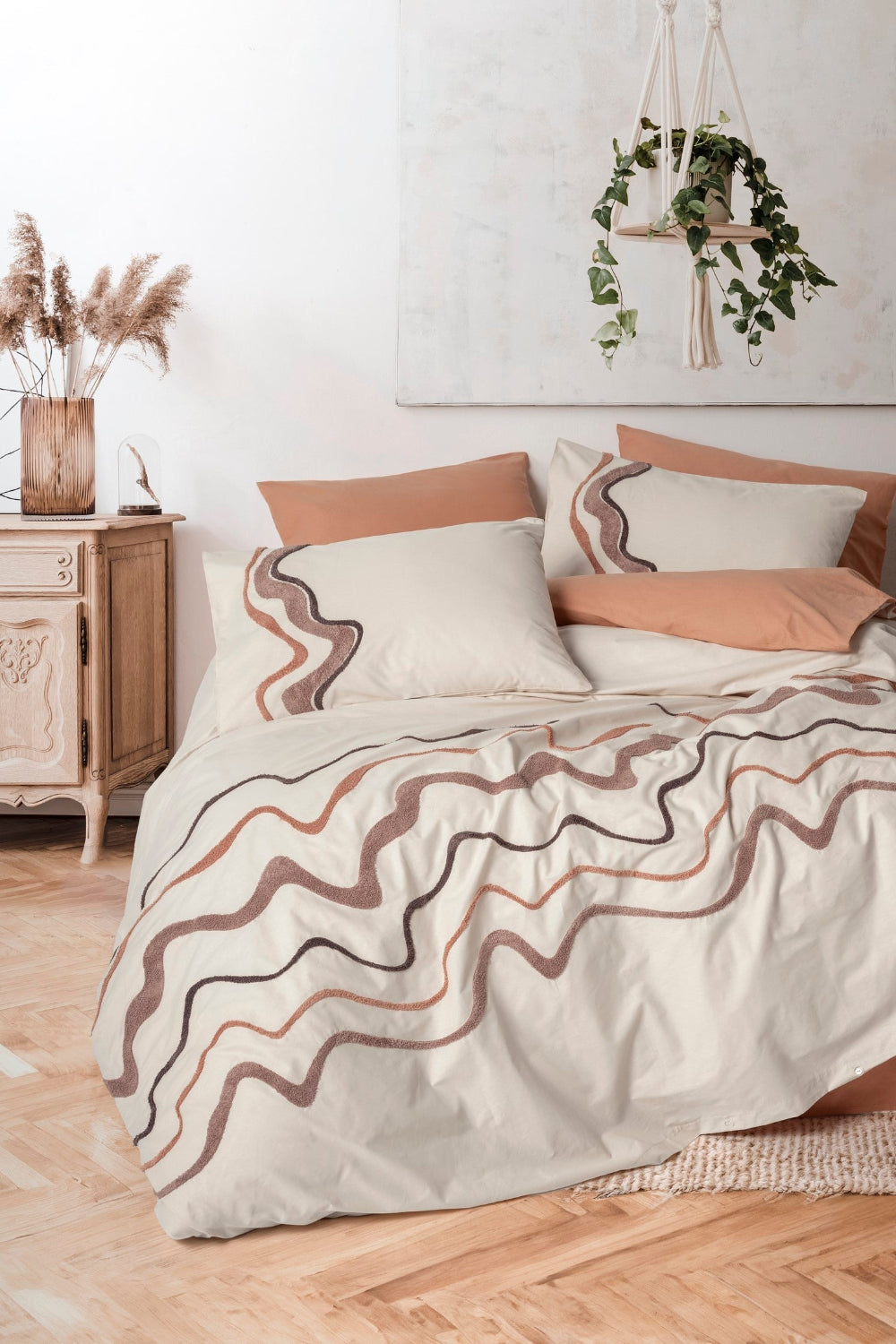 Puff Nakışlı Çift Kişilik Nevresim Takımı Molende Karamel