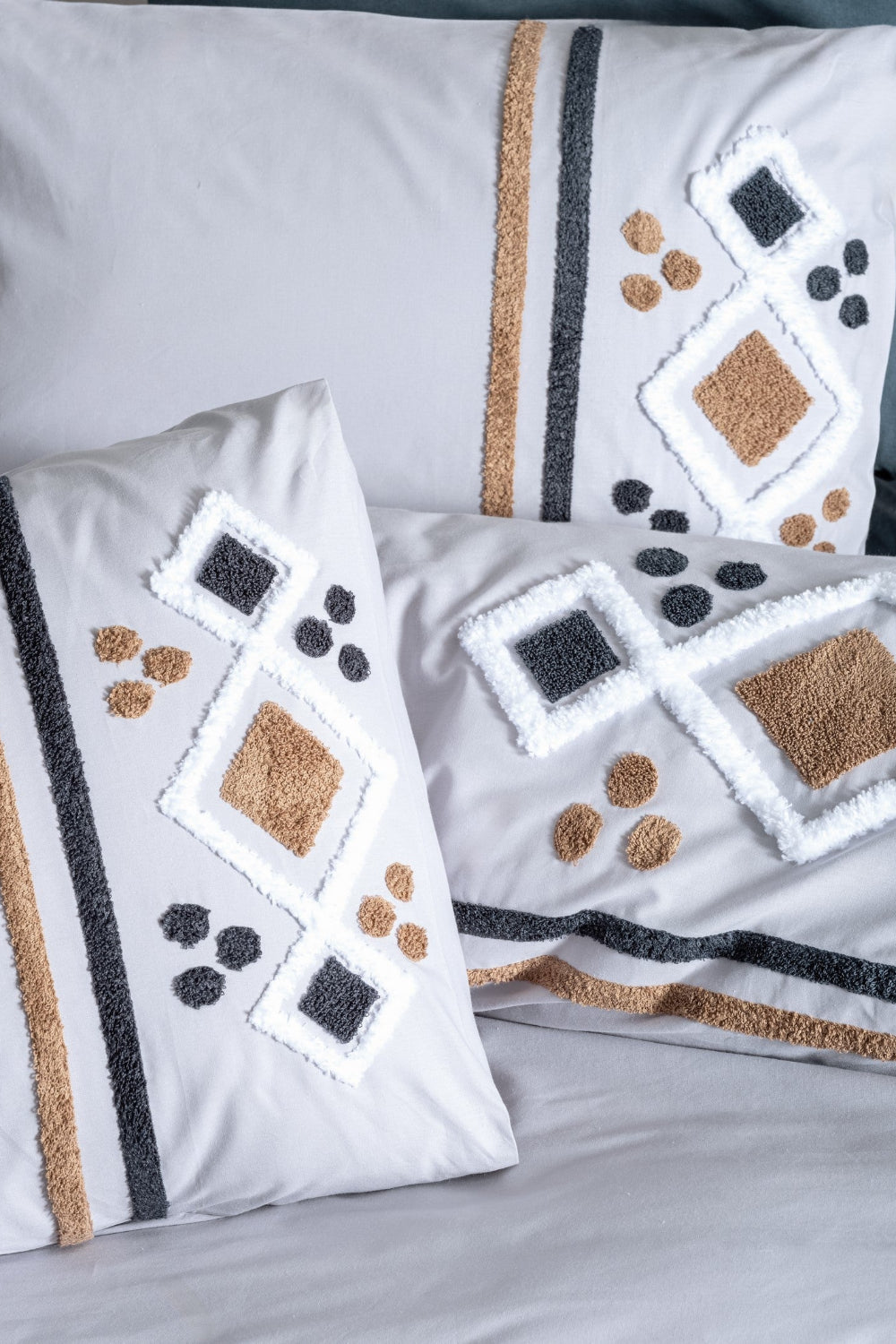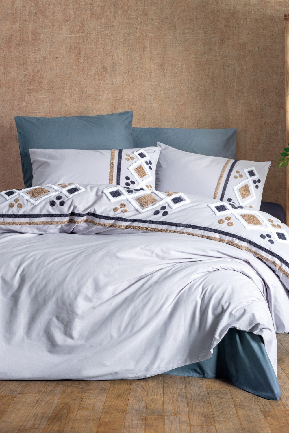 Puff Nakışlı Çift Kişilik Nevresim Takımı Stesso Gri