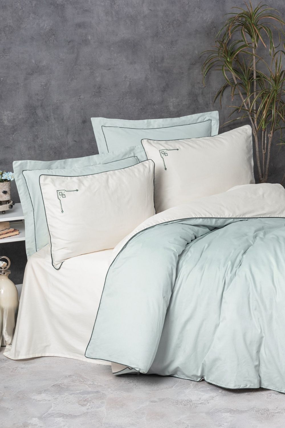 Elite Saten Çift Kişilik Nevresim Takımı Vanko Mint