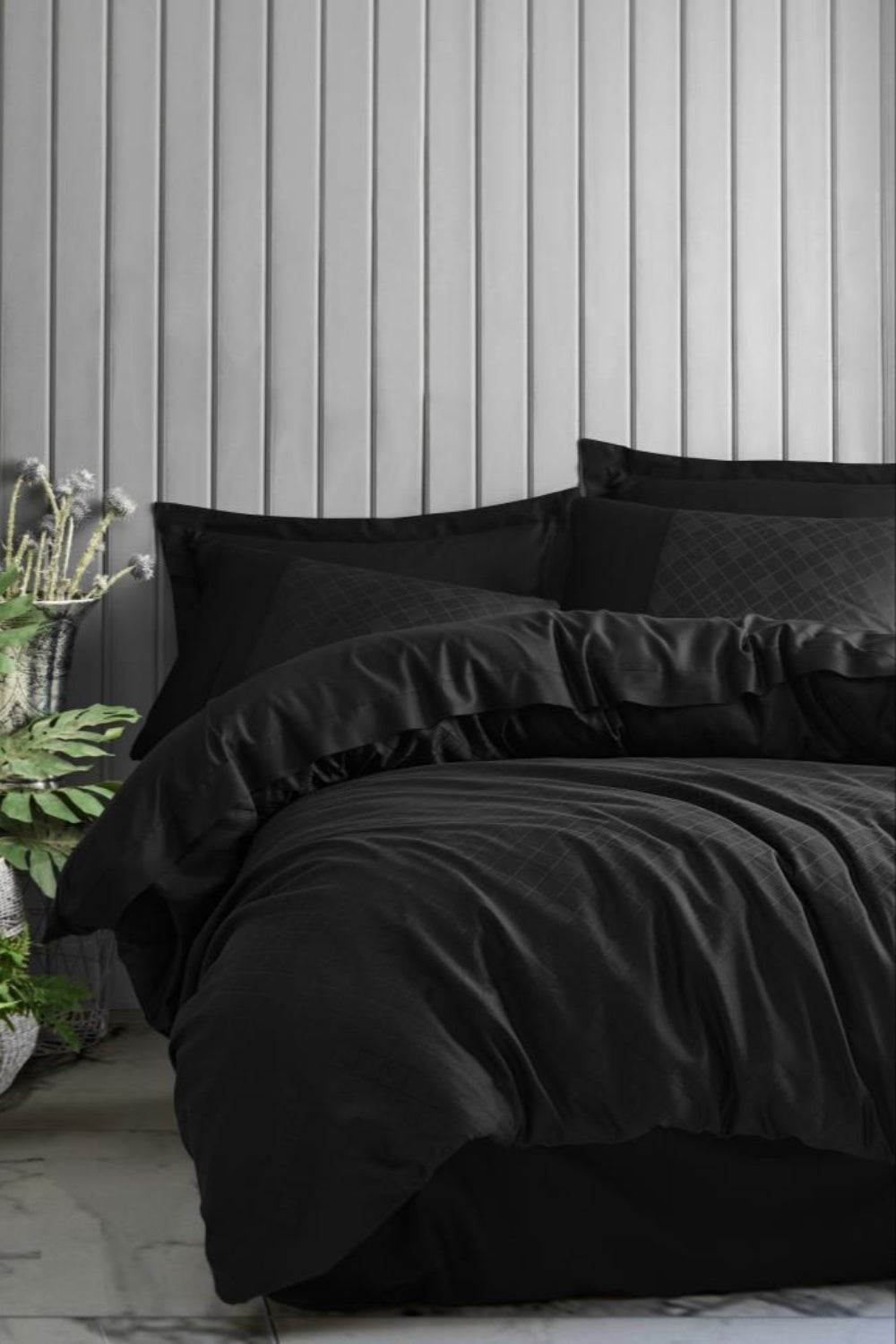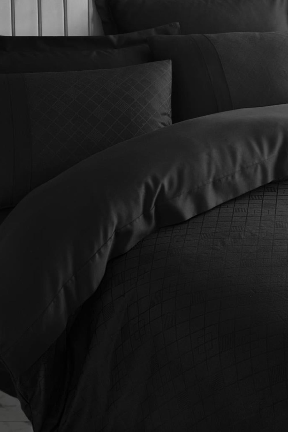 Jakarlı Saten Çift Kişilik Nevresim Takımı Dama Siyah