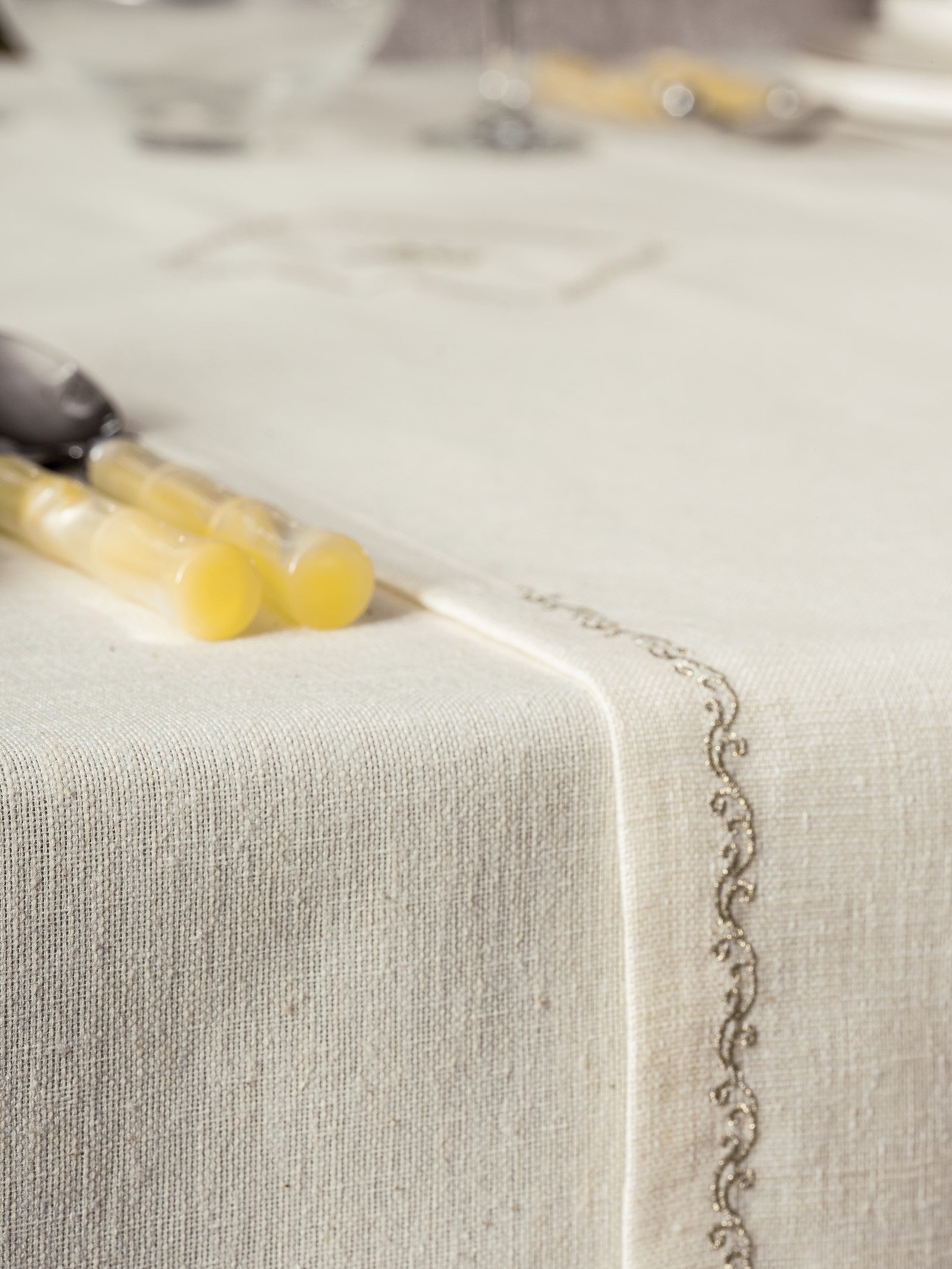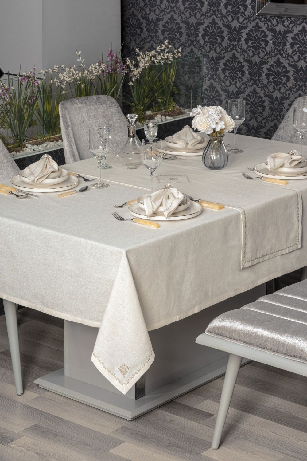 Keten Masa Örtüsü Takımı Pera Ekru 175x240