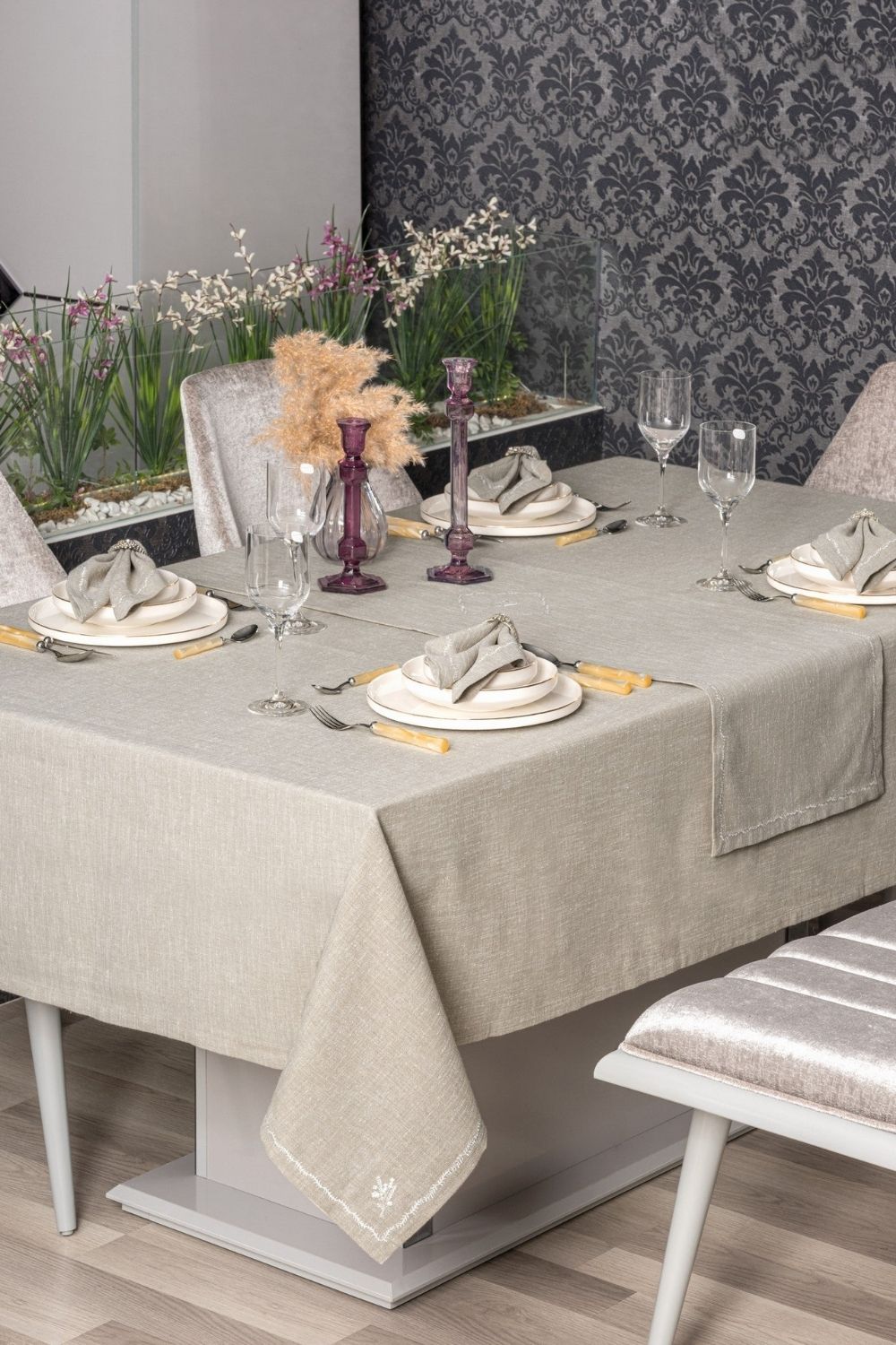 Keten Masa Örtüsü Takımı Pera Toprak 175x240