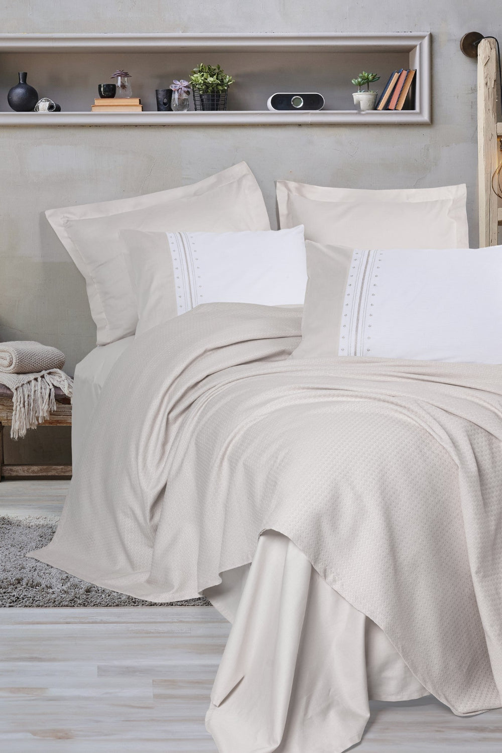 Lusso Bambu Çift Kişilik Pike Takımı Chaste Taş