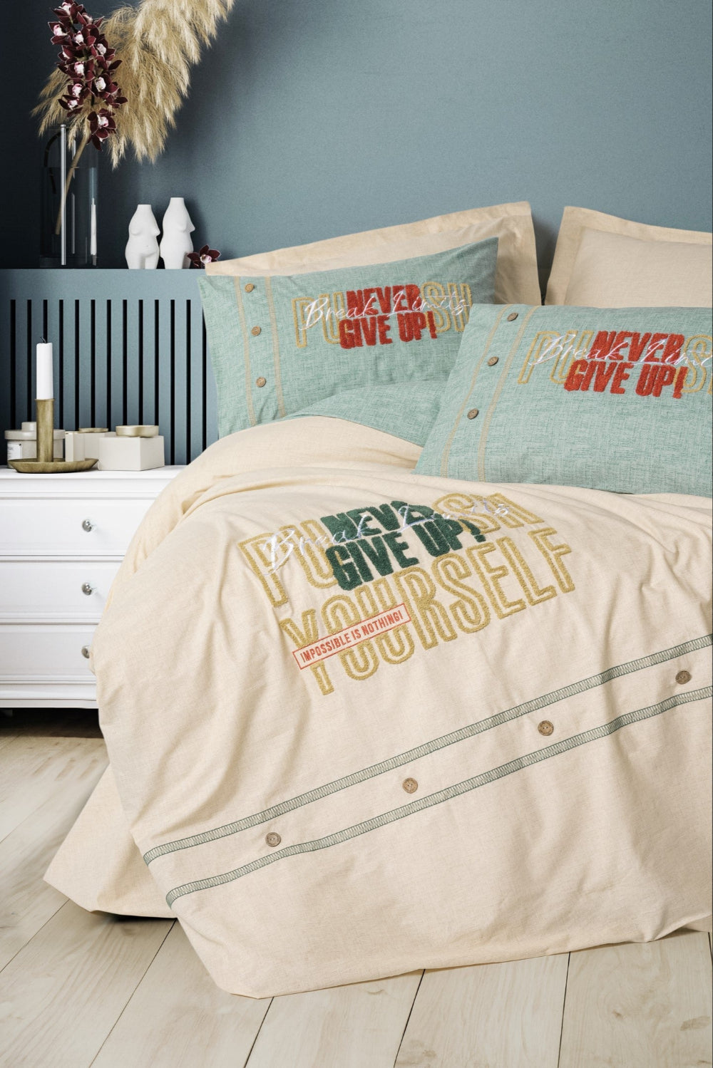 Mood Nakışlı Ranforce Çift Kişilik Nevresim Takımı Forward Bej