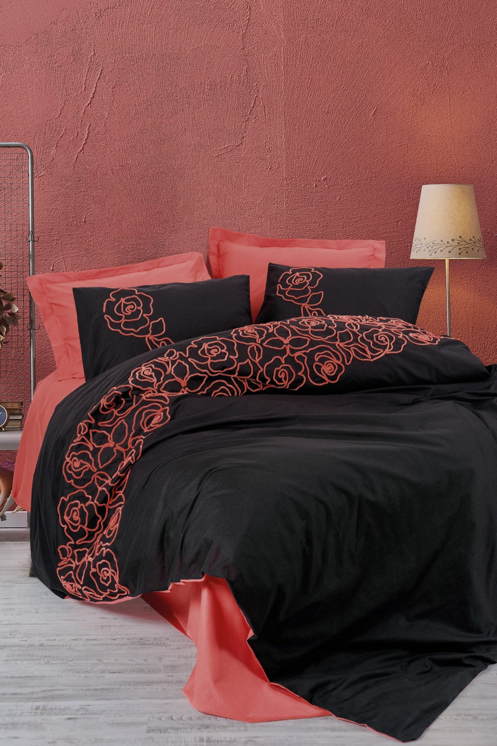 Nakışlı Ranforce Çift Kişilik Nevresim Takımı Rosen Mercan