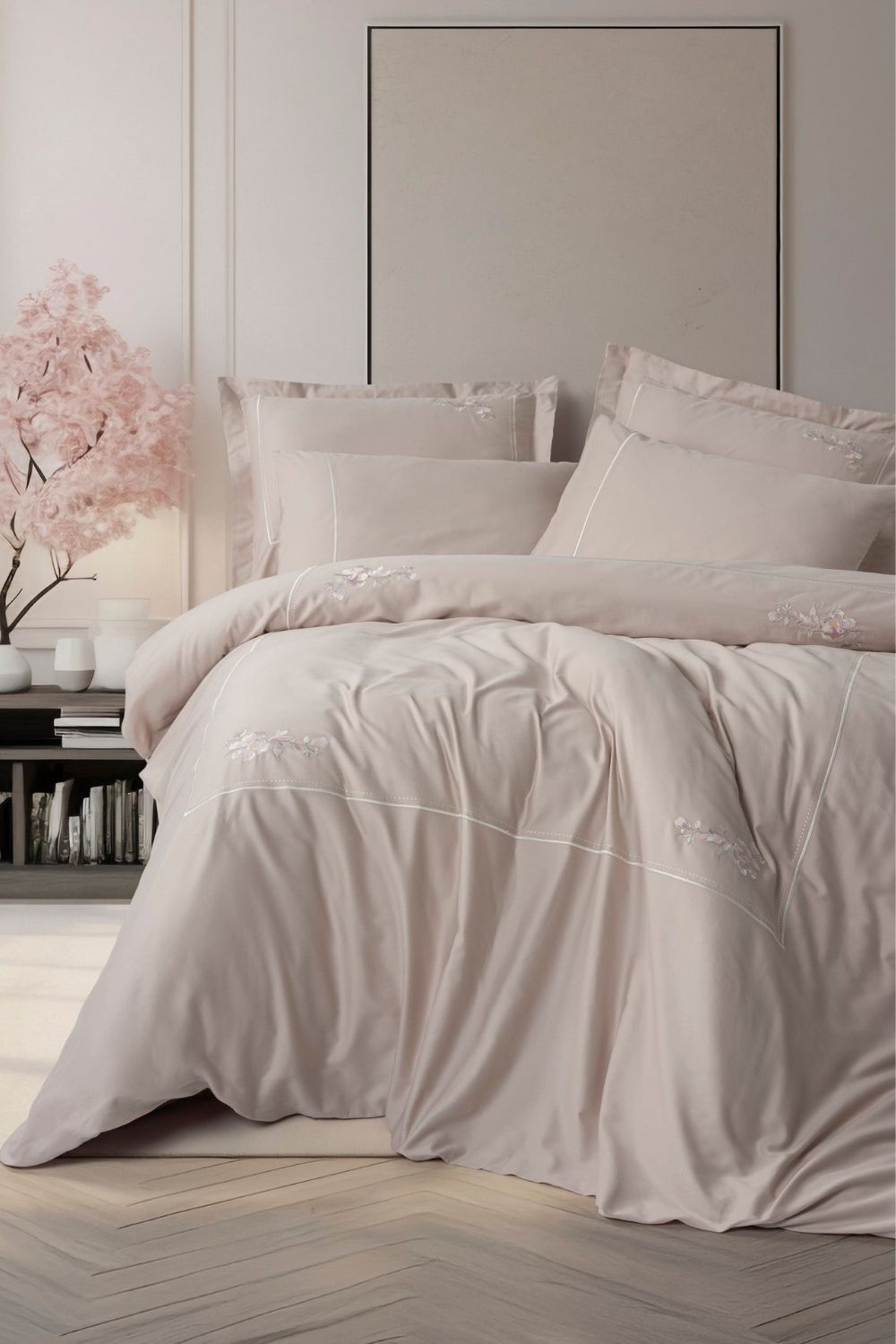 Nakışlı Saten Çift Kişilik Nevresim Takımı Alameda Lila