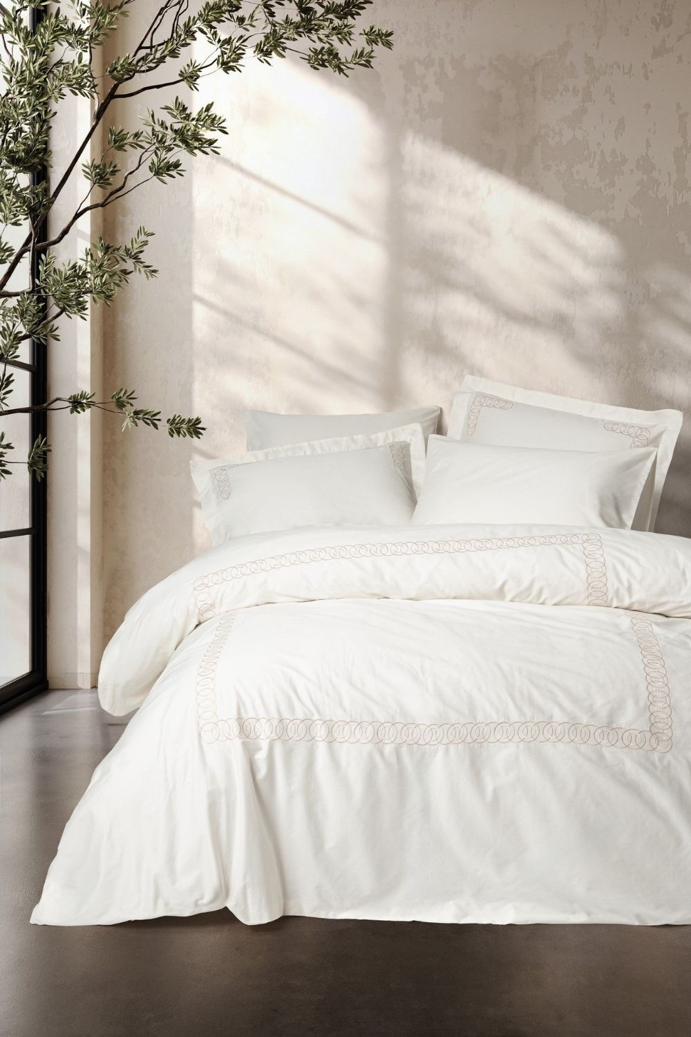 Nakışlı Saten Çift Kişilik Nevresim Takımı Riley Ekru