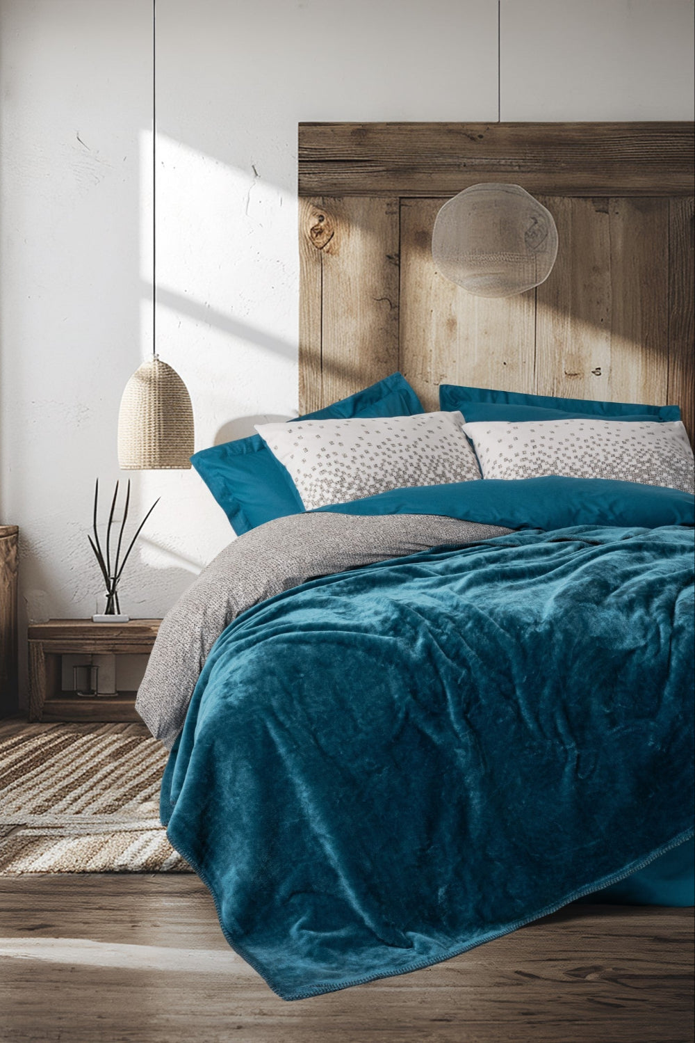 Oyster Battaniyeli Tek Kişilik Nevresim Takımı Petrol