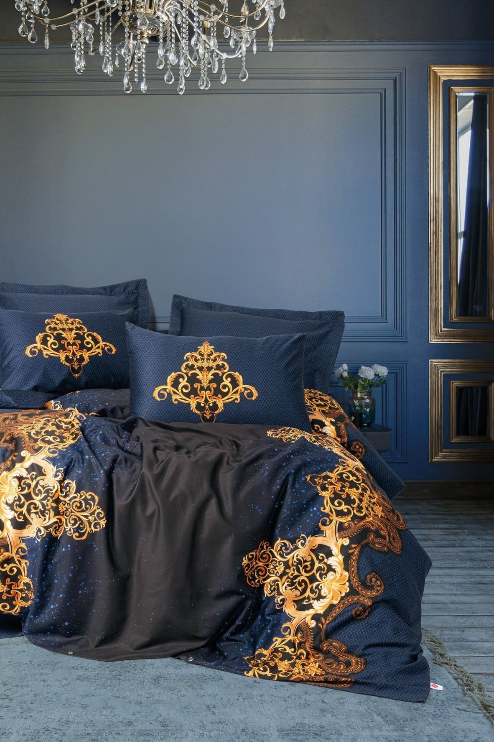 Palace Saten Çift Kişilik Nevresim Takımı Tutsu Lacivert