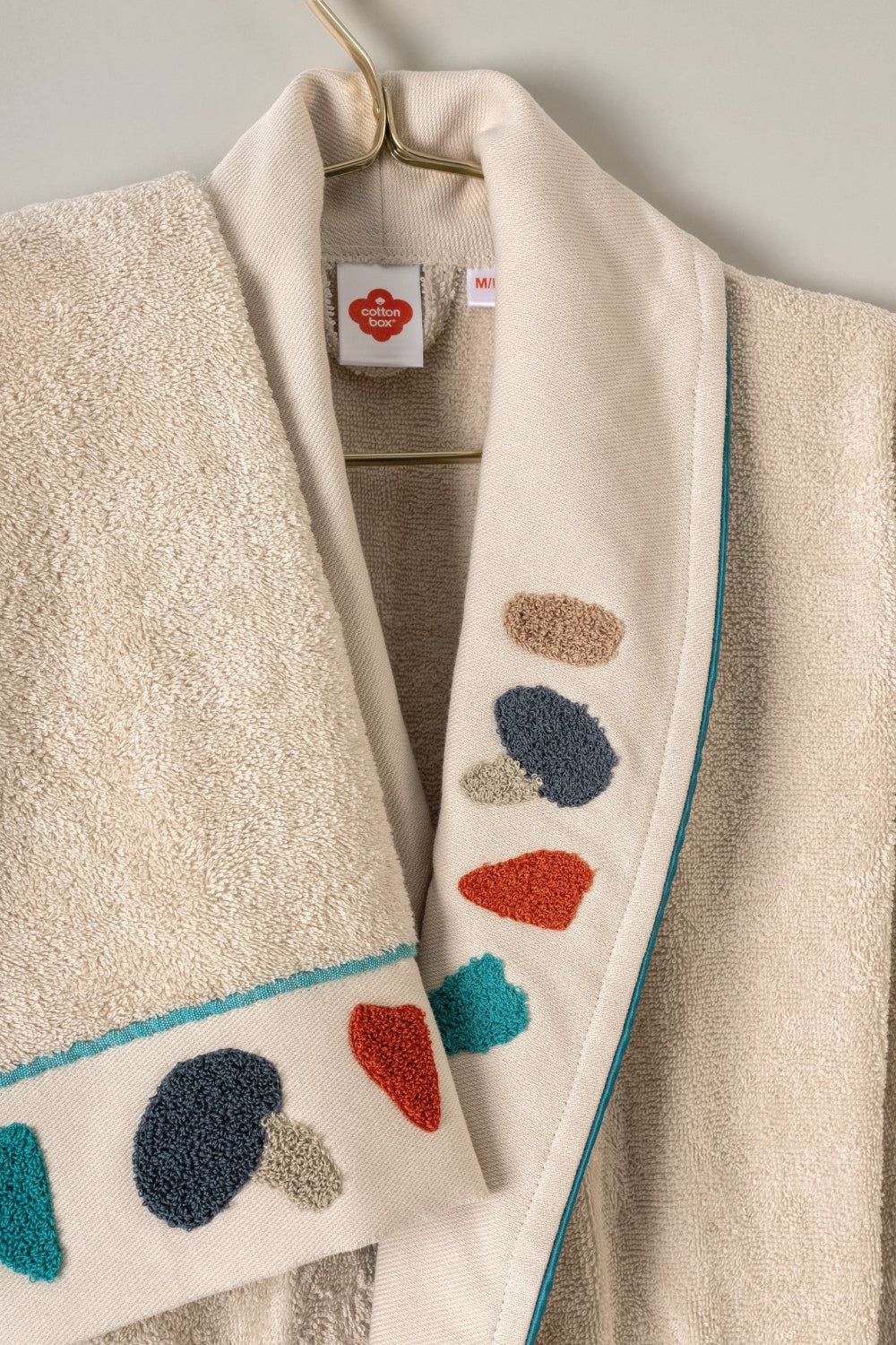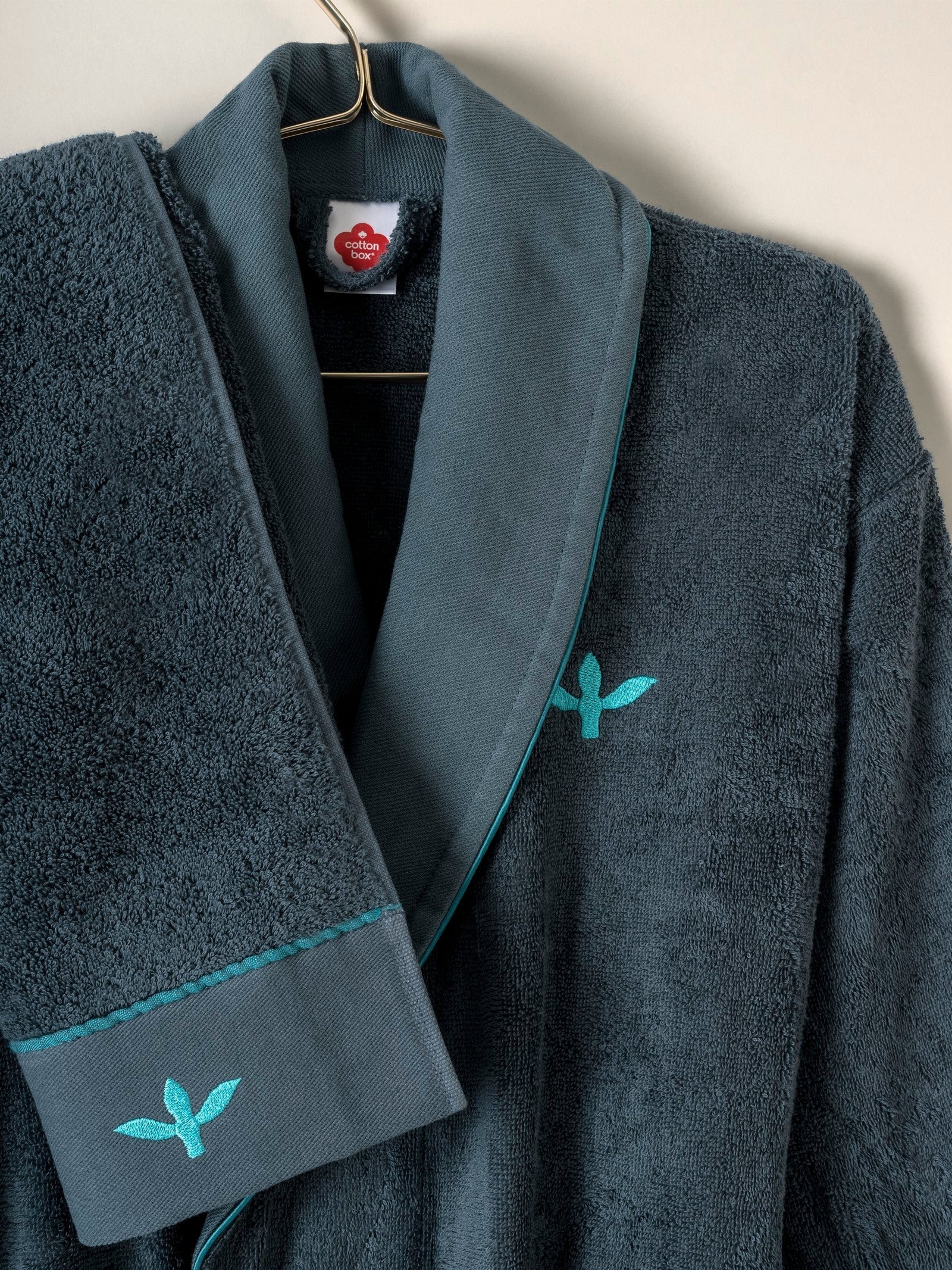 Puff Nakışlı Aile Bornoz Seti Gaja Bej Petrol