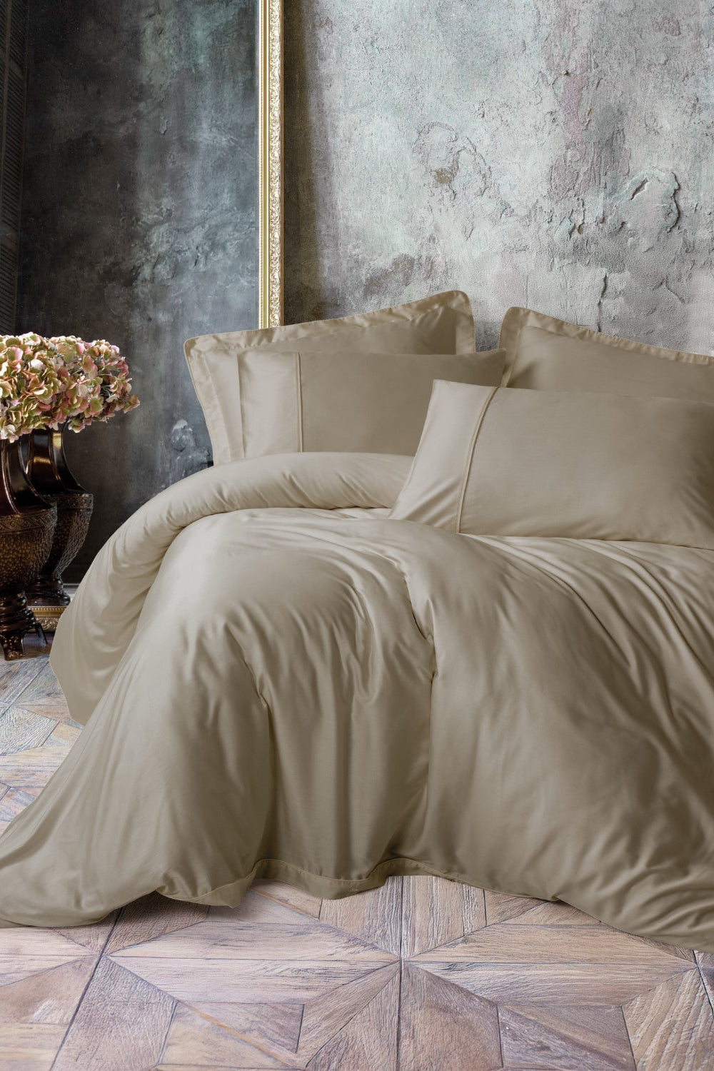 Silky Saten Çift Kişilik Nevresim Takımı Bej