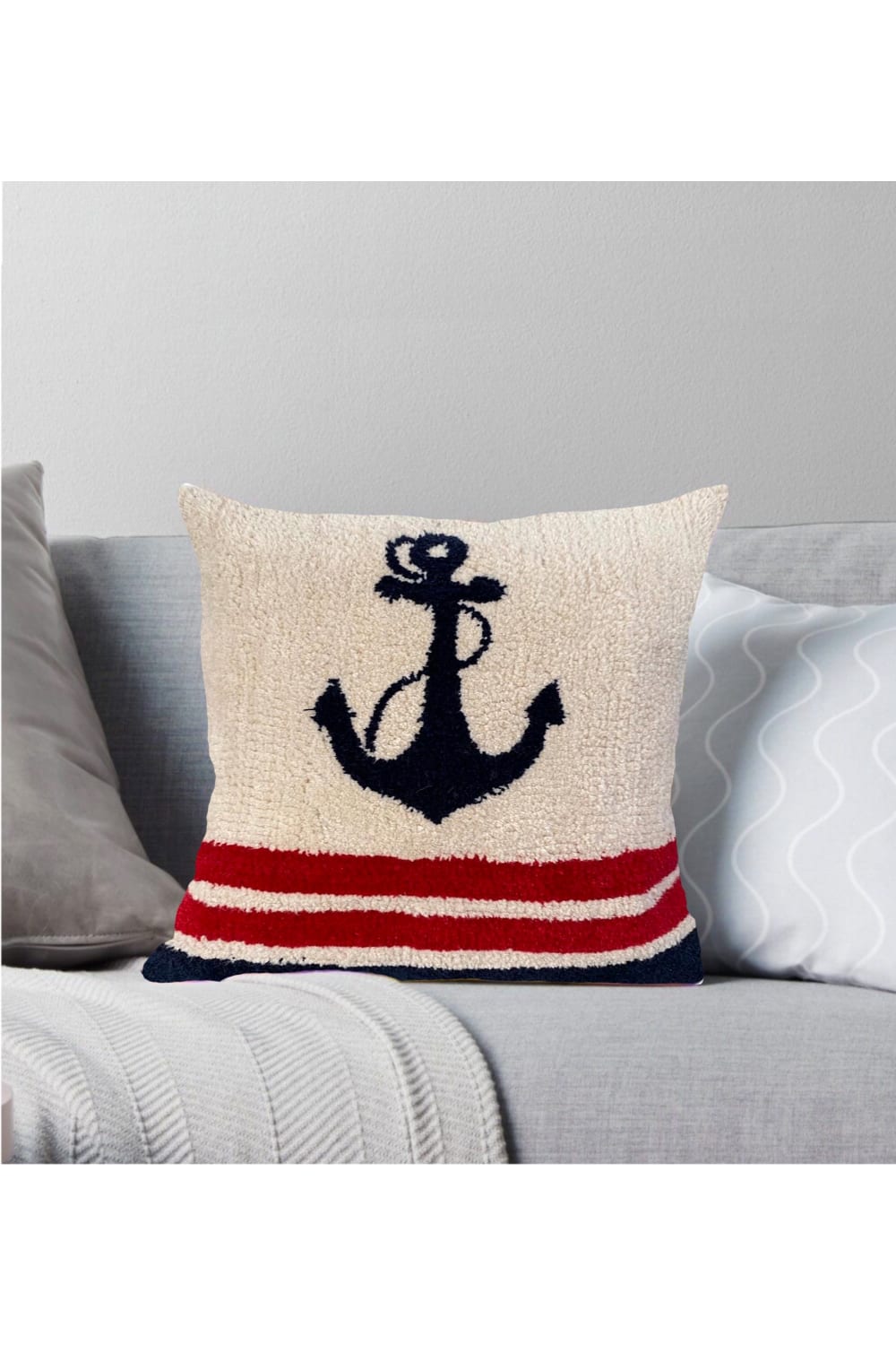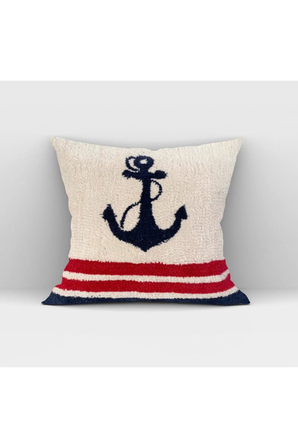 Çapa Kırlentimiz tufting dokuma tekniği ile üretilmiştir. Tasarımı tamamen bize ait olan ürünümüzün içeriğinde akrilik ve pamuk iplik kullanılmıştır.