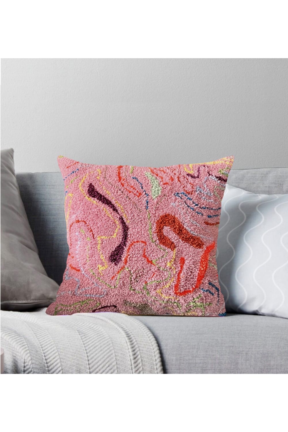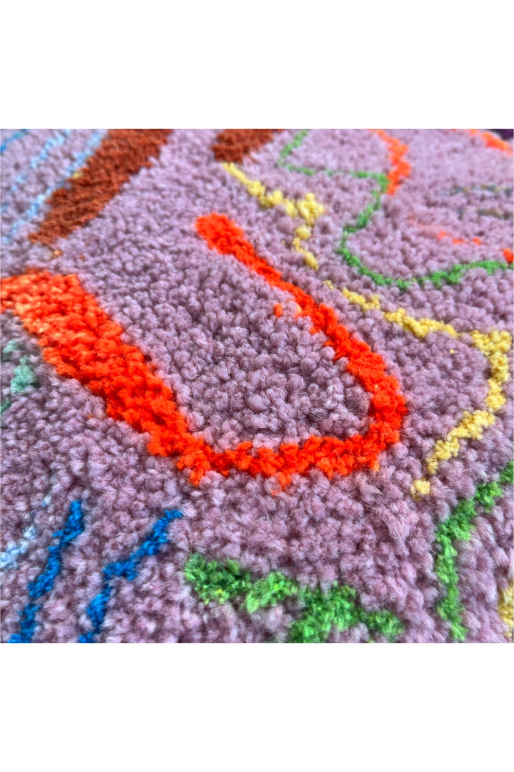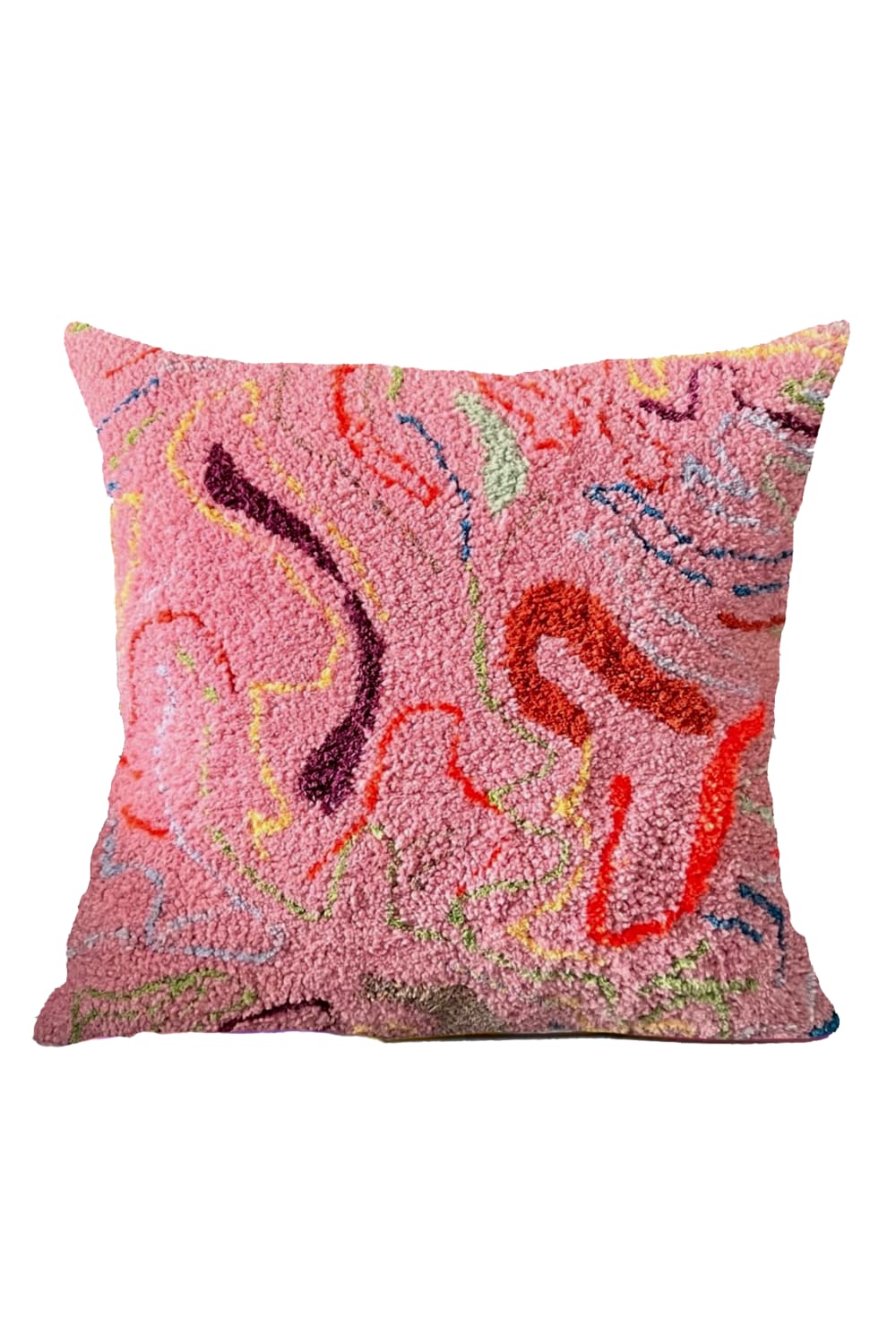 Pembe Akış Kırlentimiz tufting dokuma tekniği ile üretilmiştir. Tasarımı tamamen bize ait olan ürünümüzün içeriğinde akrilik ve pamuk iplik kullanılmıştır.