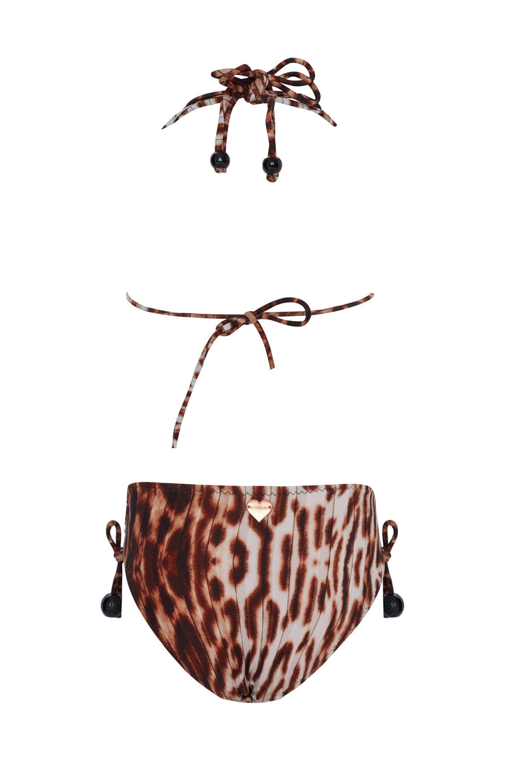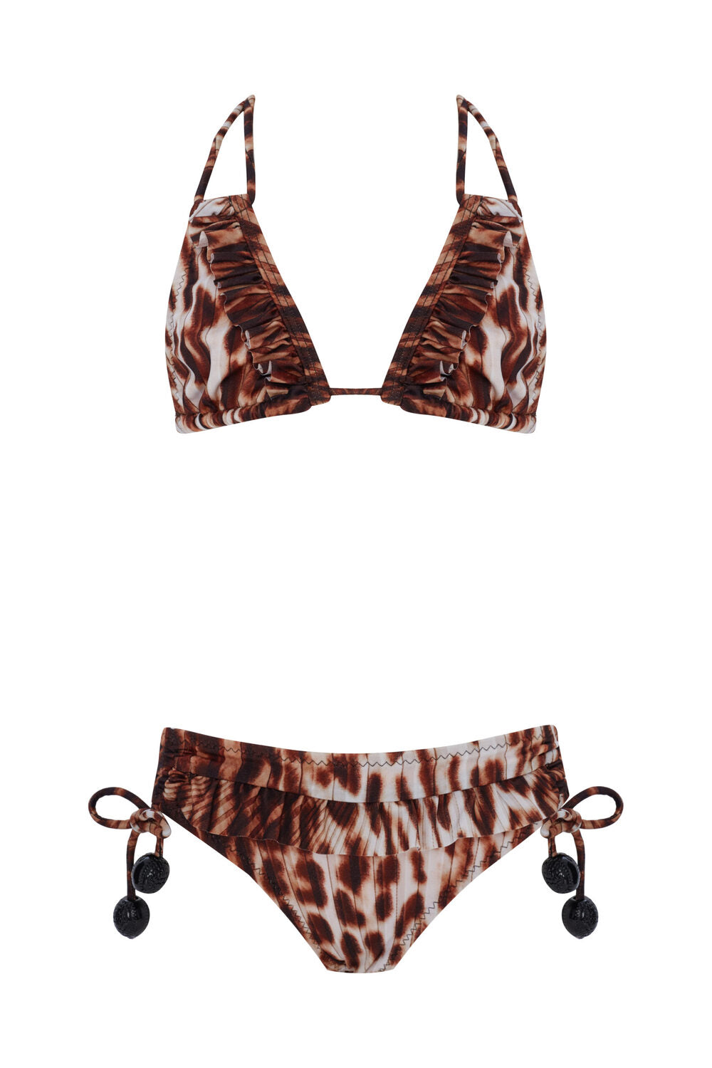 Ava Leopard Pattern Kids Bikini With Ruffle And Black Bead Details