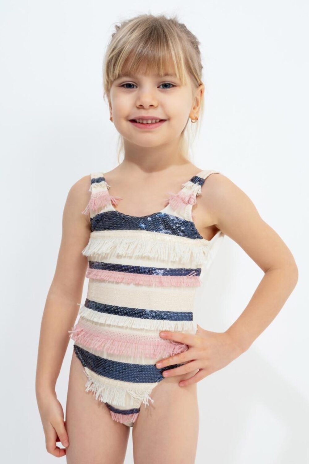 · HIGH QUALITY ITALIAN FABRIC · LYCRA® XTRA LIFE™ CERTIFICATE· UV PROTECTION· FULLY LINED· EMBROIDERED SEQUIN TASSEL LACE