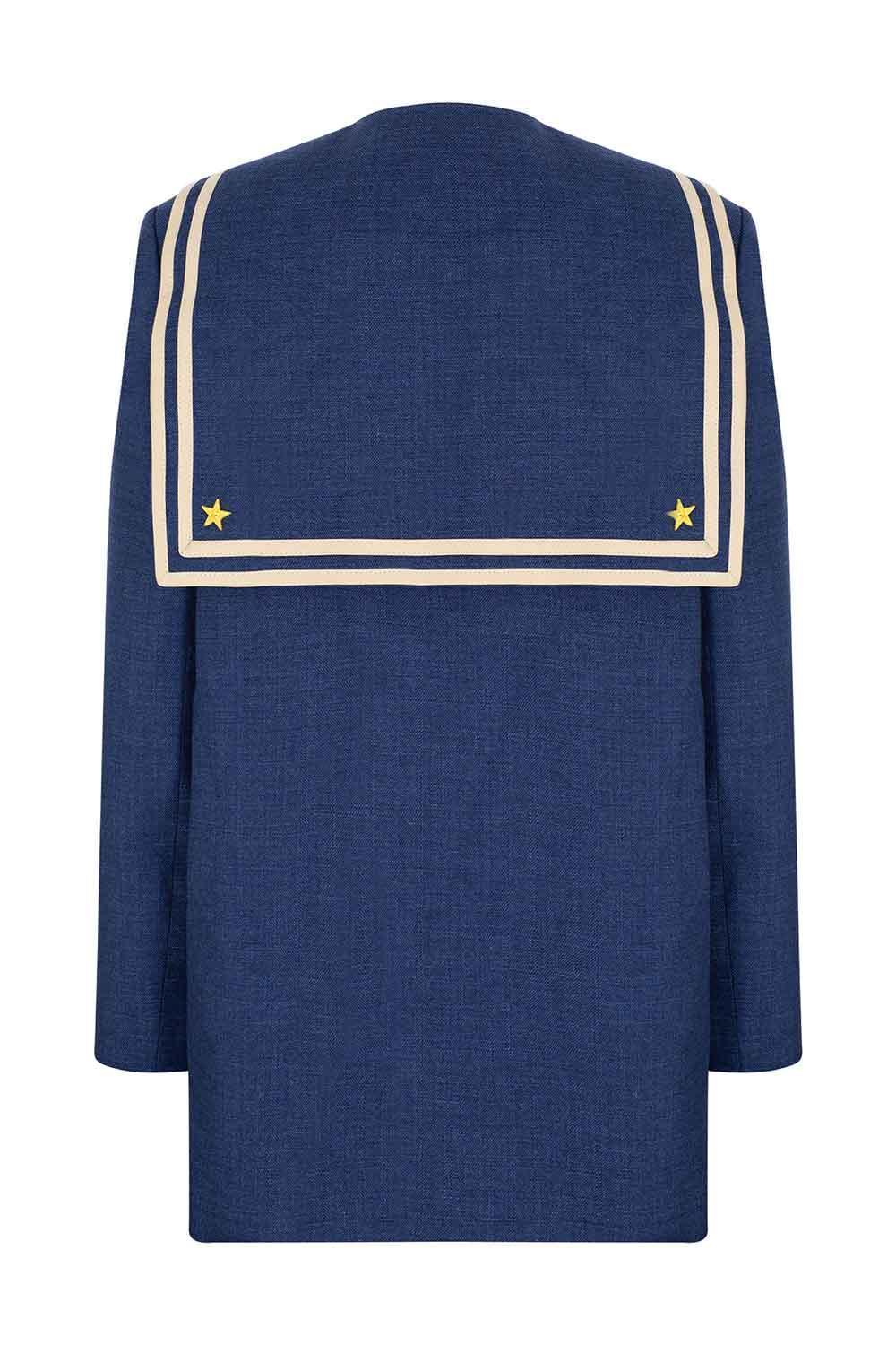 Elbise, Saılor Koleksiyonu ile Luce del Sole koleksiyonunun birbirinden ilham alarak tasarlanmıştır.Mavi pamuklu Keten kumaştan üretilen bu ürün, Yıldız imzasıyla süslenmiş bir denizci yakasıyla öne çıkıyor.Kruvaze Kapamaya sahip olan bu Elbiseyi ister ceket , ister elbise olarak kullanabilirsiniz.