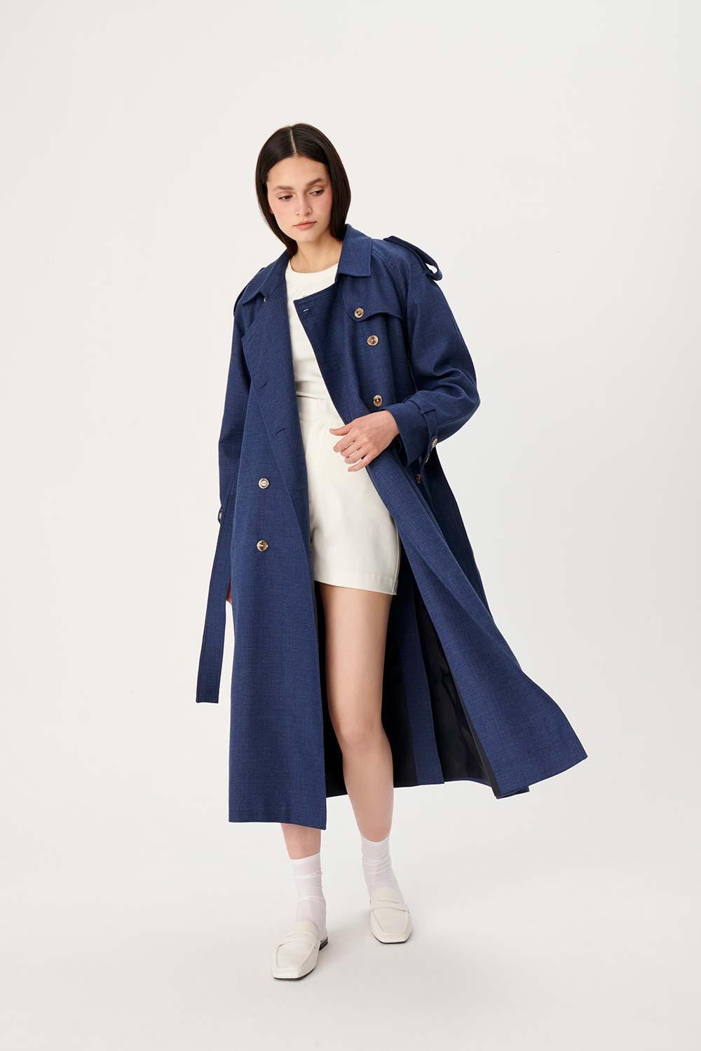 Trençkot, Wabi Sabi Luce Del Sole koleksiyonunda, Sadelik ve zamansızlığın kodlarıyla gardırop için önemli bir parçayı yeniden yorumluyor. Lacivert pamuk ketenden üretilen bu trençkot, arka kısmında bulunan Wabi Sabi imzasıyla ve beli vurgulayan bir kemer ile zenginleştirilmiştir.