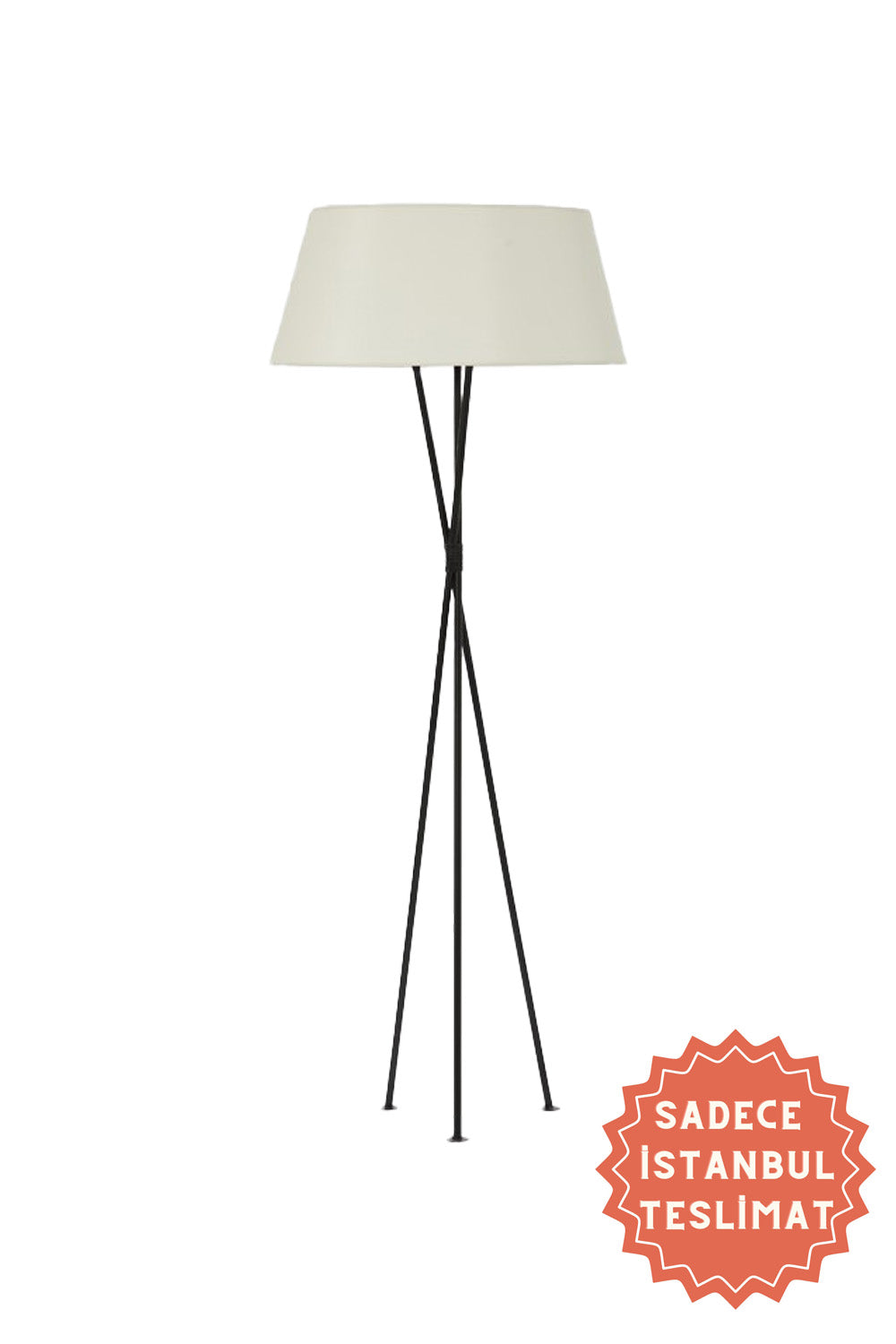 Scala beyaz kumaştan şapkası, ışığı zarifçe süzerek ortama huzurlu bir ambiyans katarken; siyah metal üç ayaklı TRIO gövde ise adeta bir heykel formunda yükseliyor.