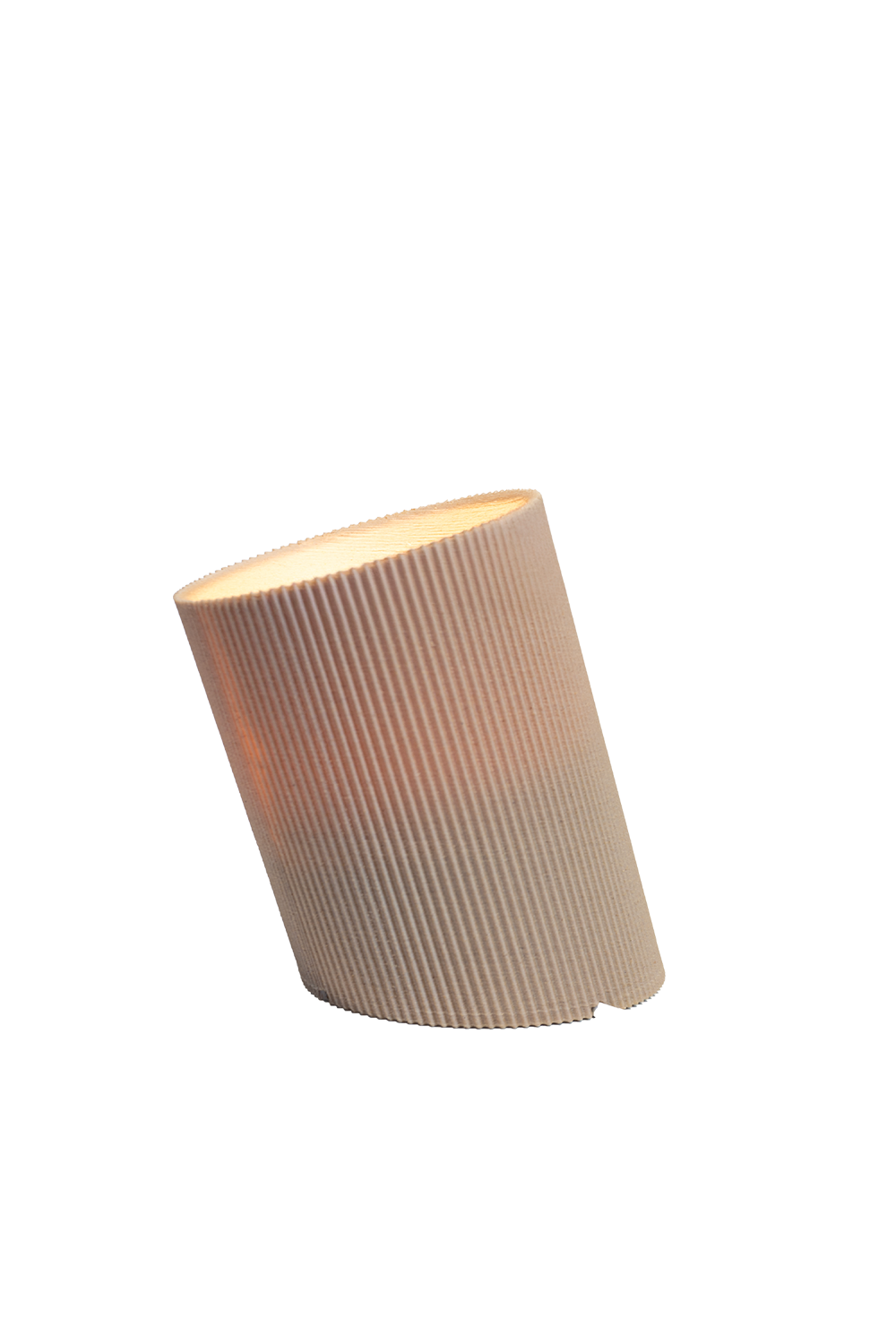 %30 ahşap katkılı organik PLA malzemeden üretilen bu lamba, hem çevre dostu hem de şık bir görünüme sahiptir.