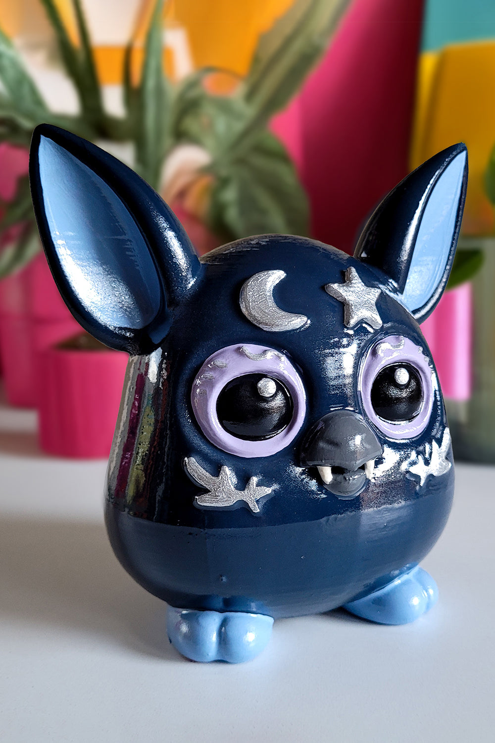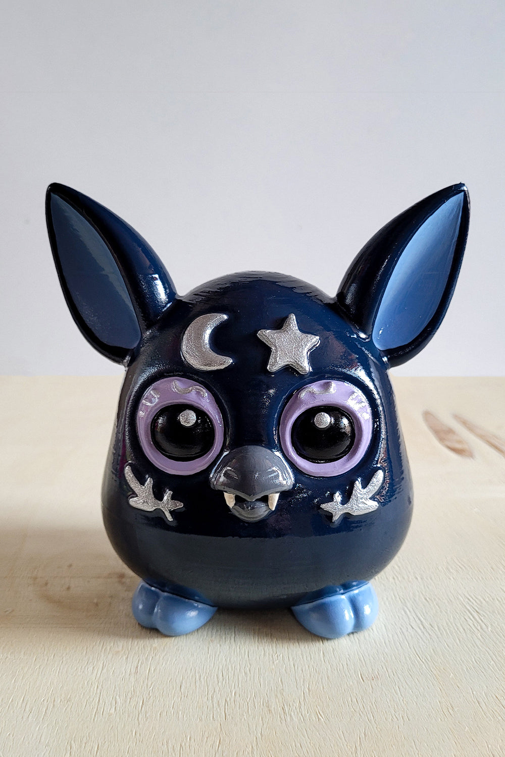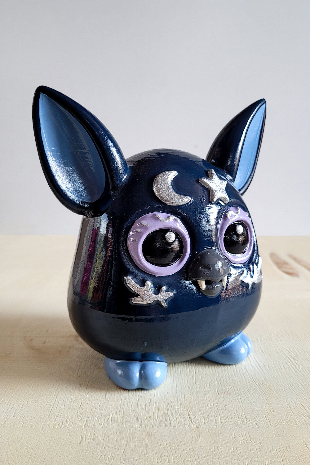 Karanlık çökerken ortaya çıkan bu minik gece canavarı, ay ve yıldızlarla süslü yüzüyle tam bir gece bekçisi! 🐾✨ Sevimli ifadesi, detaylı boyaması ve parlak yüzeyiyle evinizin en dikkat çeken parçası olmaya aday.