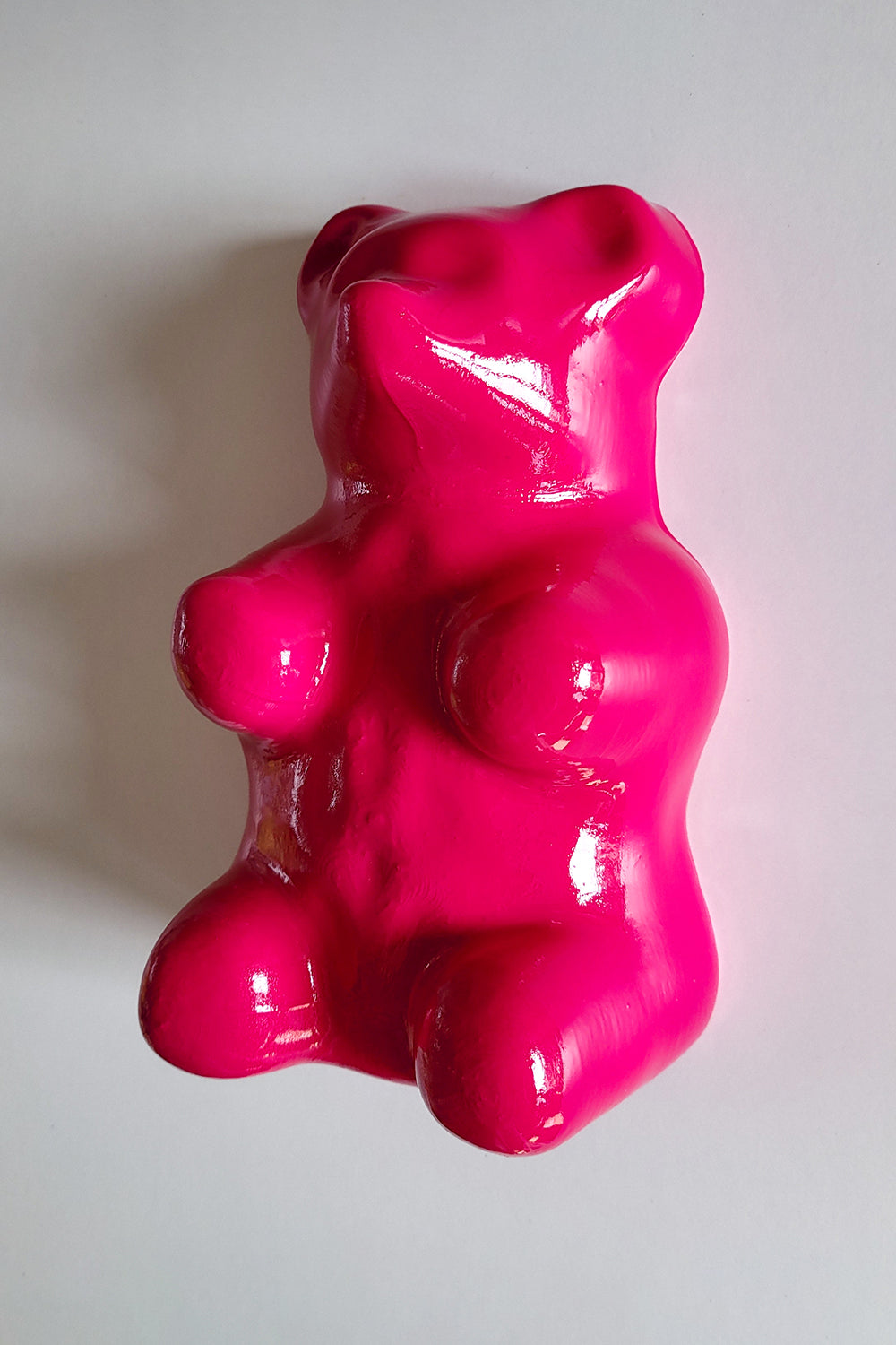 Tatlılık duvarlarda da kendini gösterebilir!Bu jelibon ayıcık formundaki duvar heykeli, çocuk ruhunu kaybetmeyenler ve dekorasyonuna eğlence katmak isteyenler için tasarlandı.PLA biyopolimer malzemeden 3D baskı ile üretilmiş, ardından el işçiliğiyle parlatılıp detaylandırılmıştır.