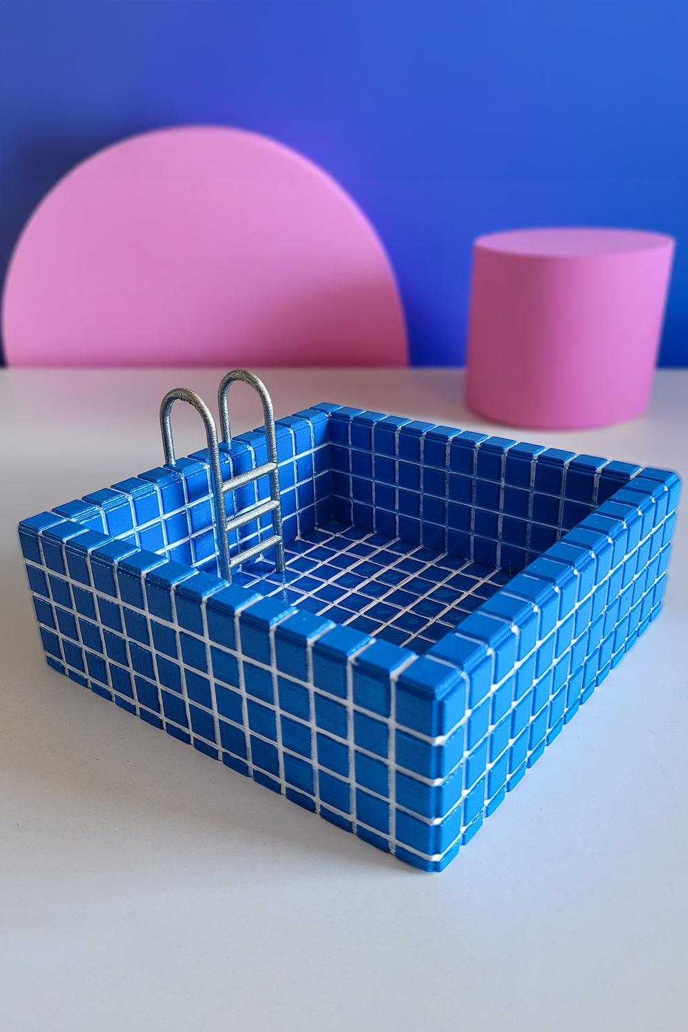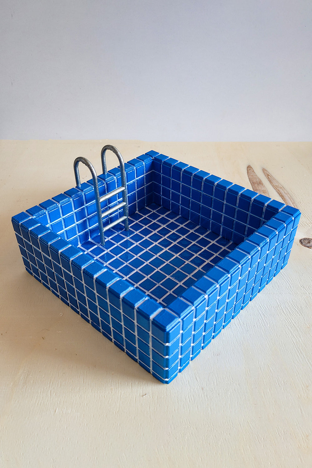 Küçük boyutuyla büyük bir etki yaratan bu mini havuz formundaki saksı, gerçek havuz karolarını andıran detaylı yüzeyi ve metal merdiven dokunuşuyla sıradanlıktan çok uzakta! 🏊♀️✨