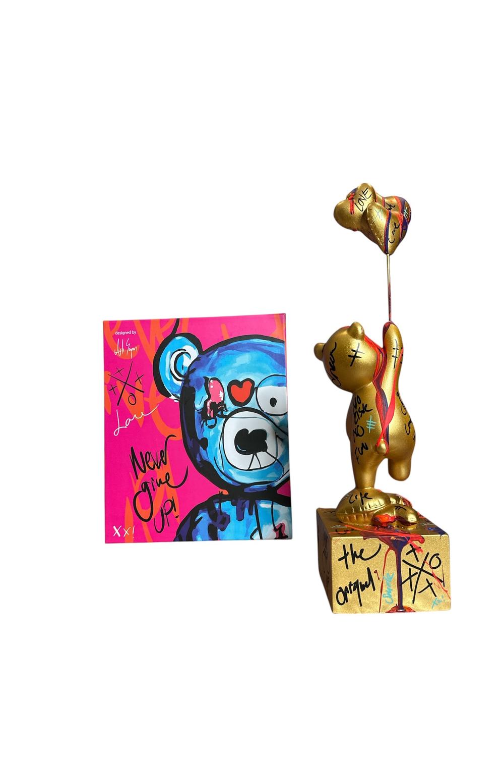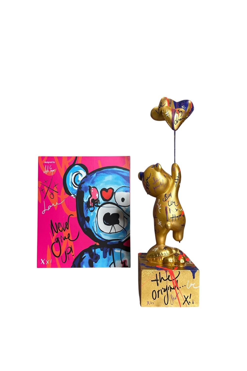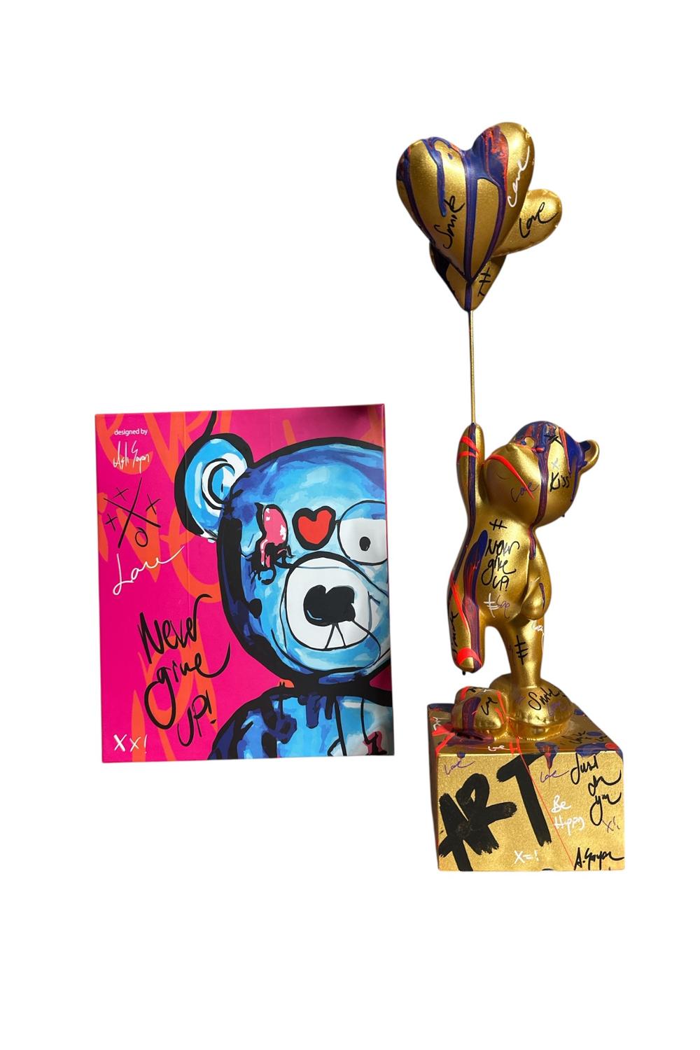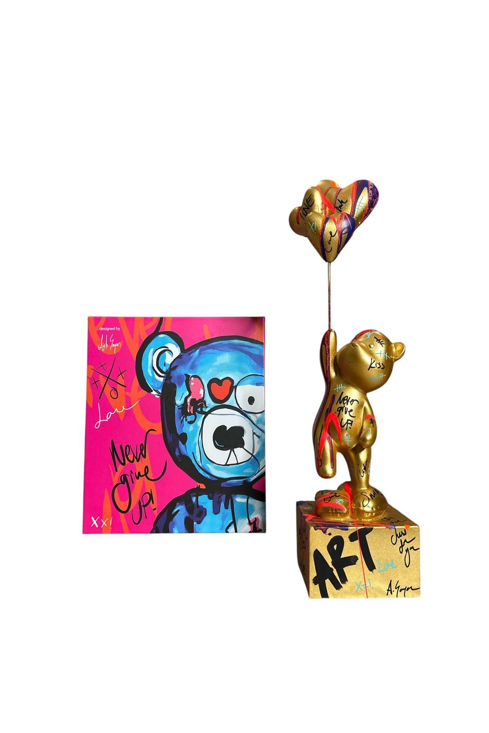 Ayakta Duran Balonlu Ayıcık Pop Art Heykel Gold