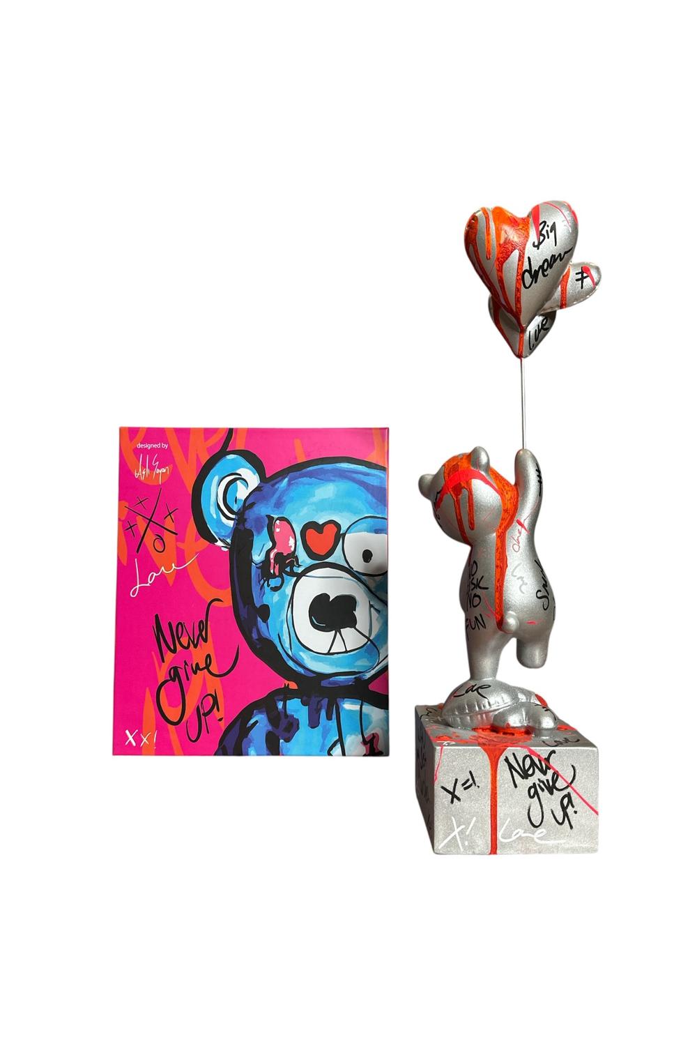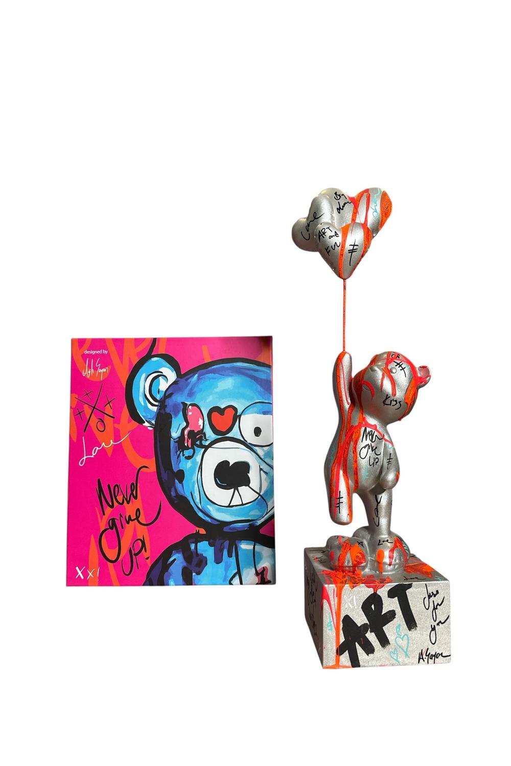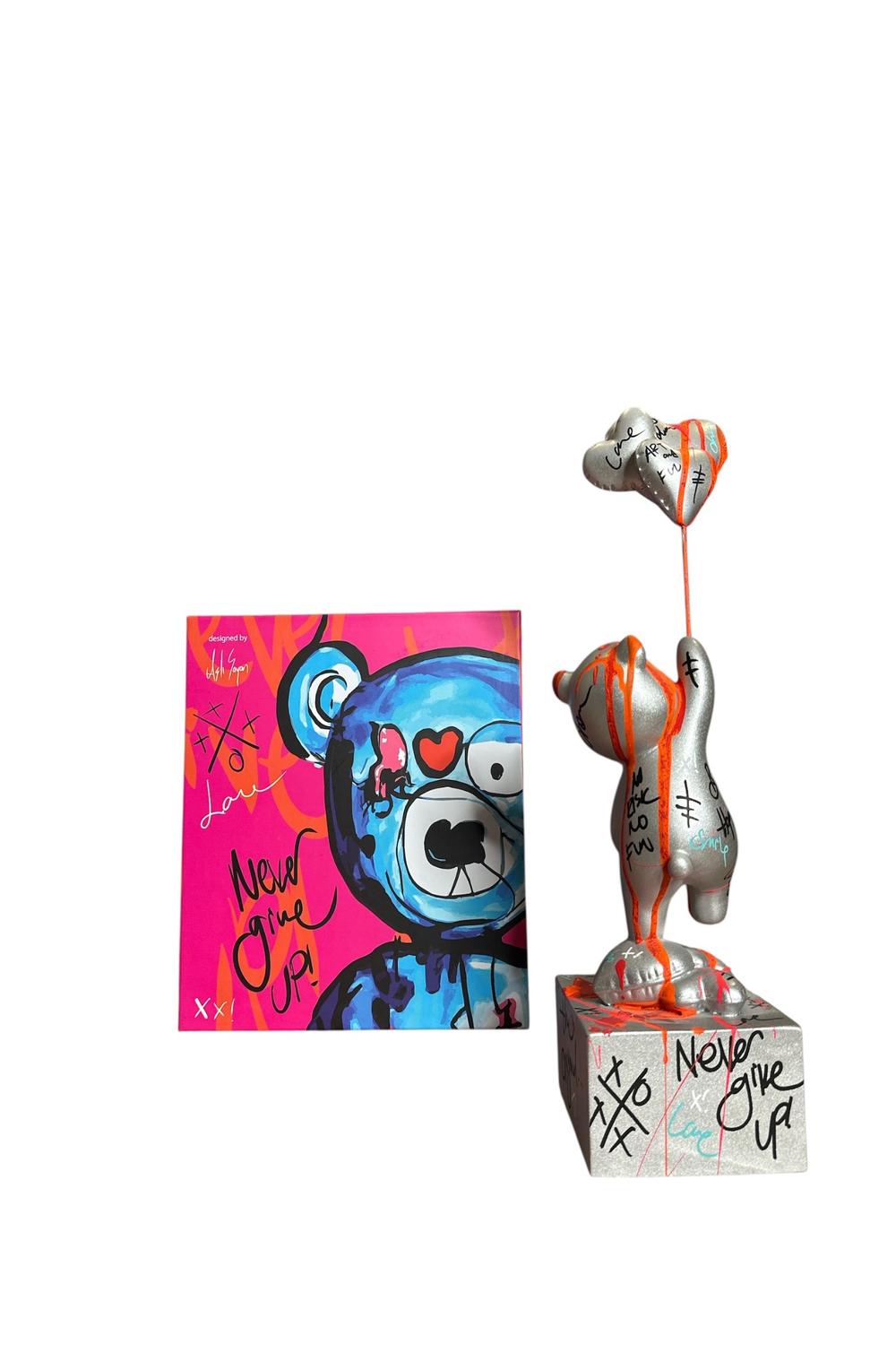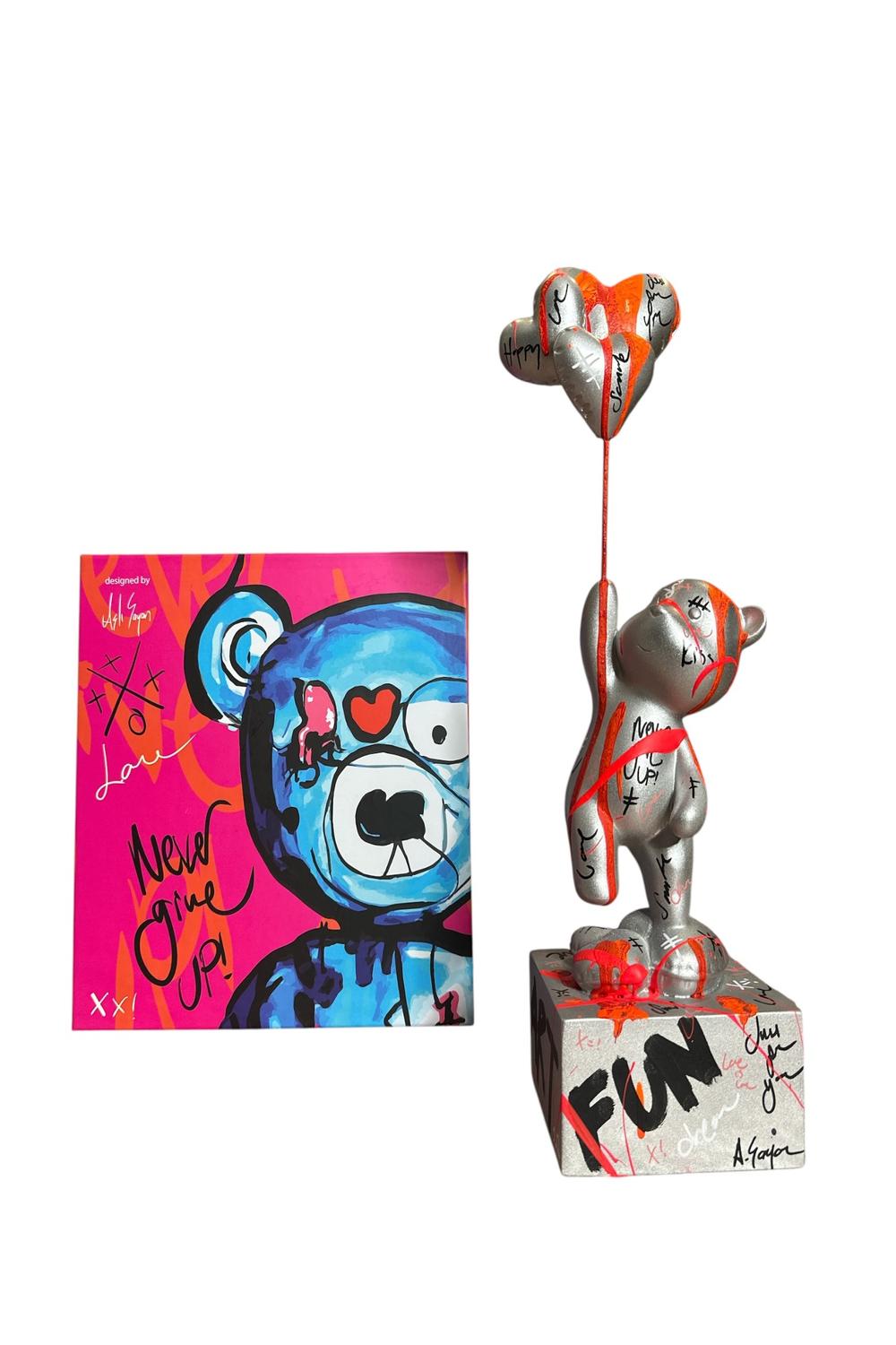 Ayakta Duran Balonlu Ayıcık Pop Art Heykel Gümüş