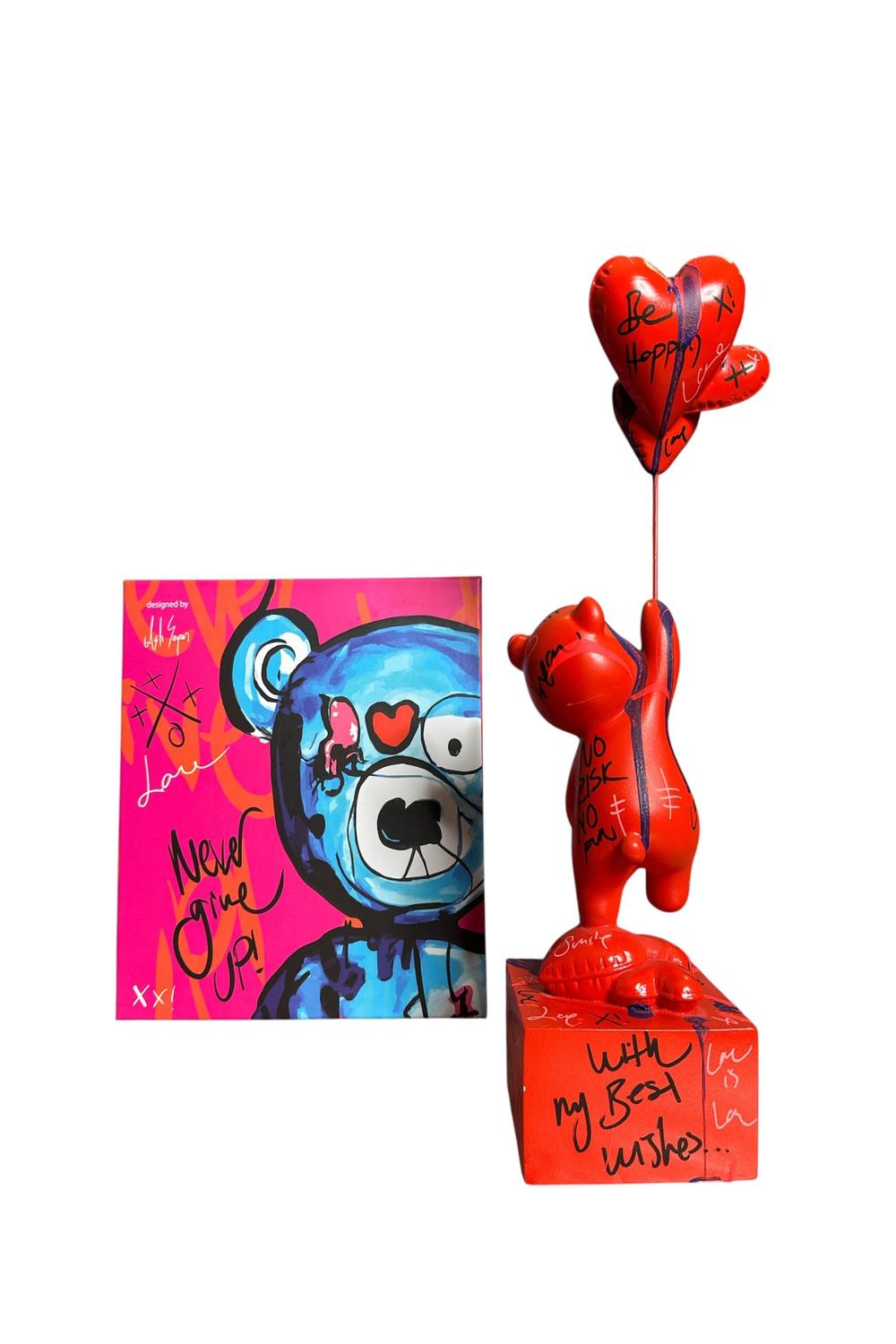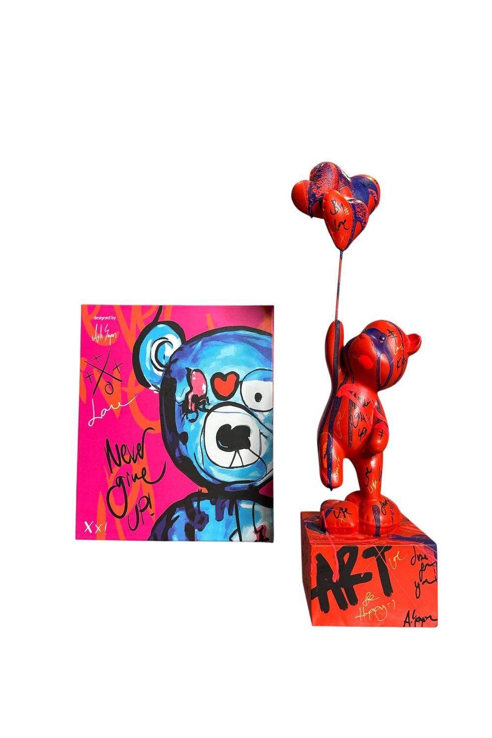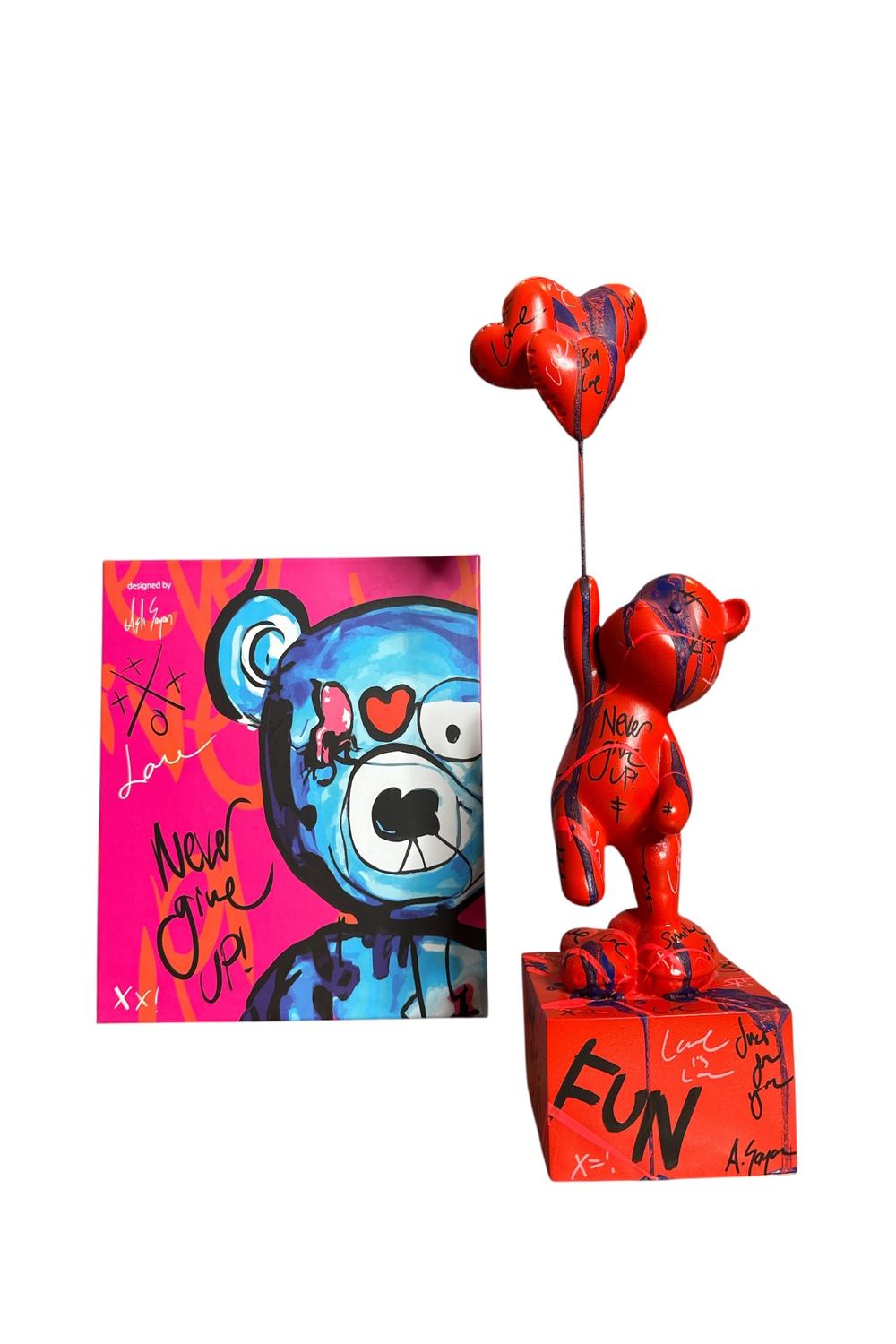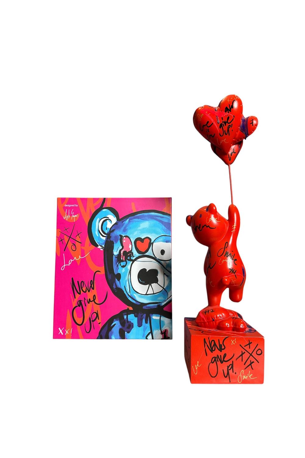 Ayakta Duran Balonlu Ayıcık Pop Art Heykel Kırmızı