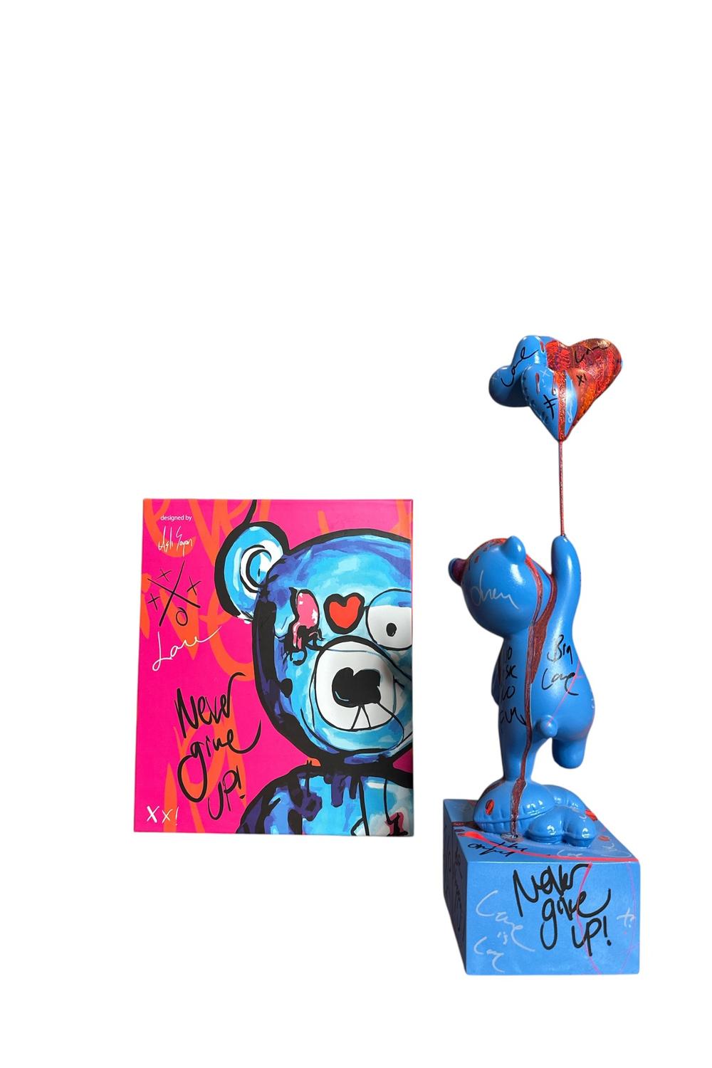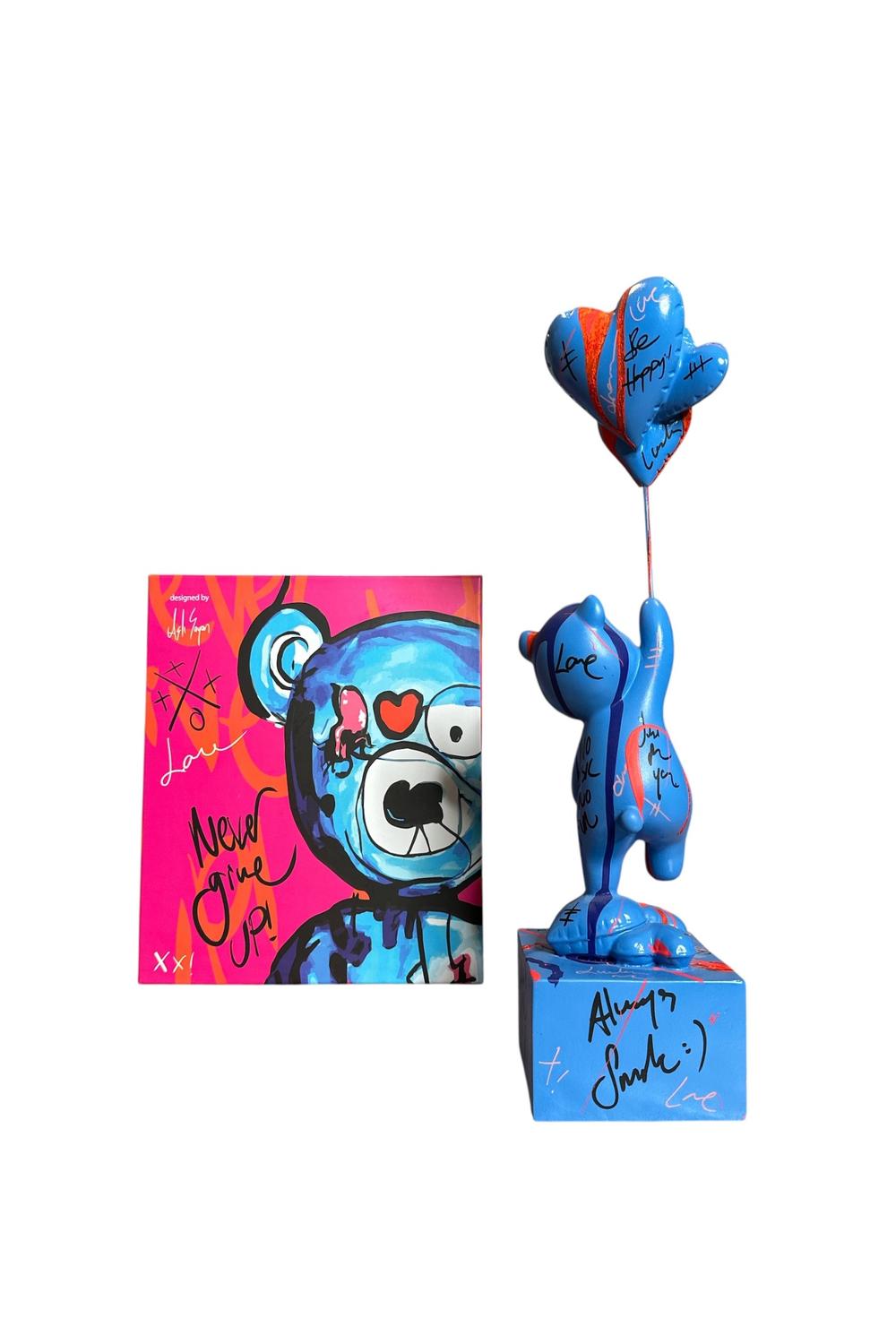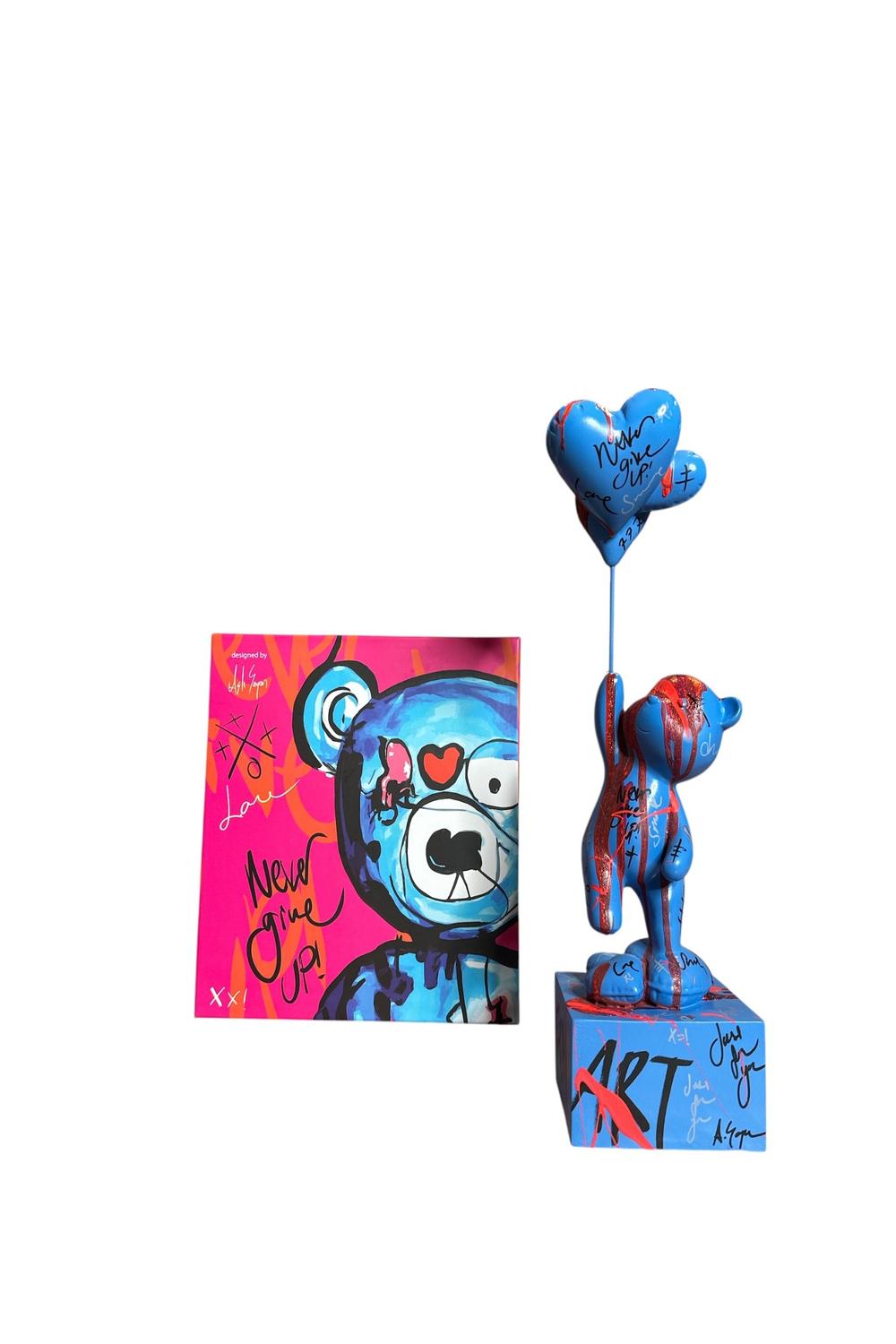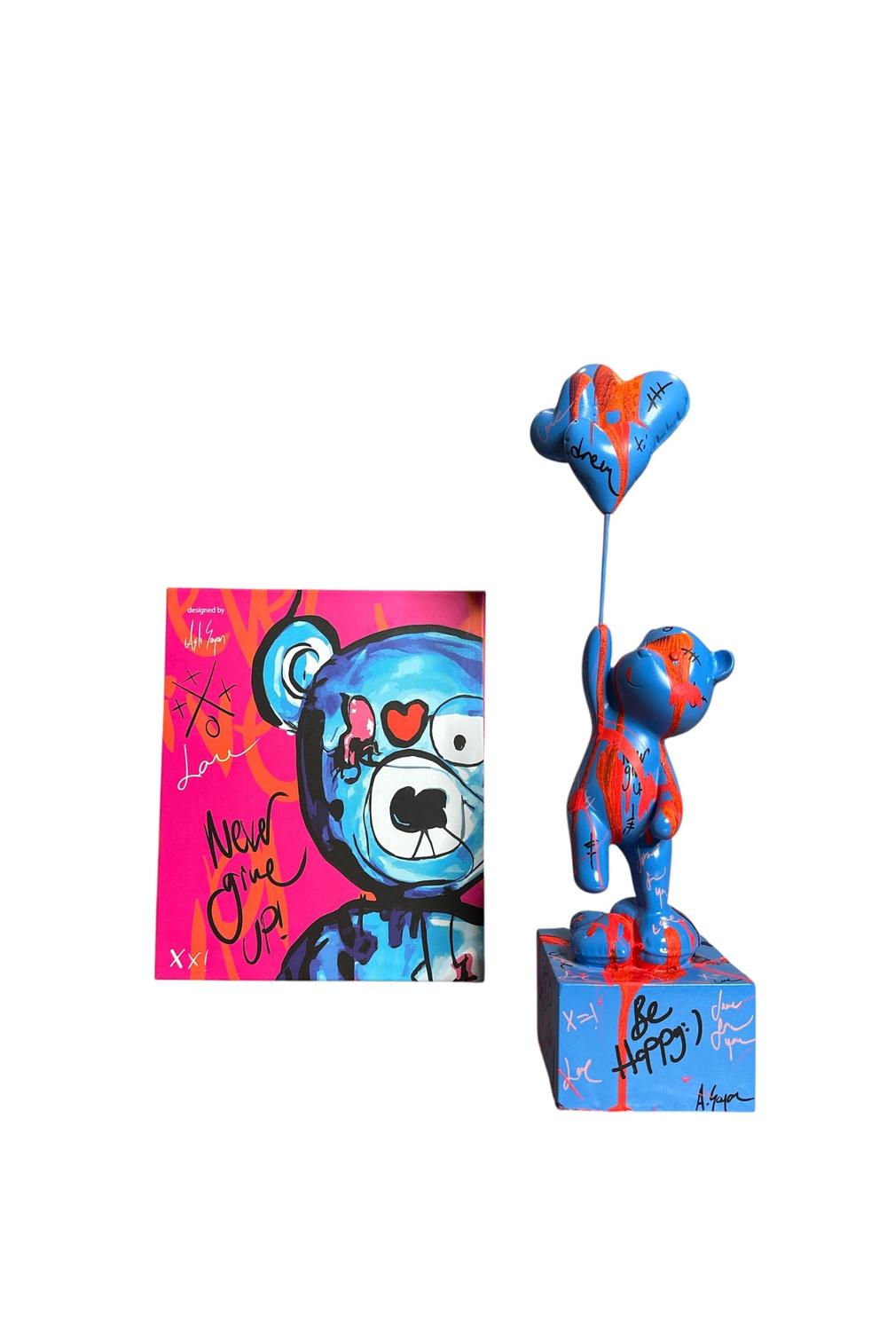 Ayakta Duran Balonlu Ayıcık Pop Art Heykel Mavi