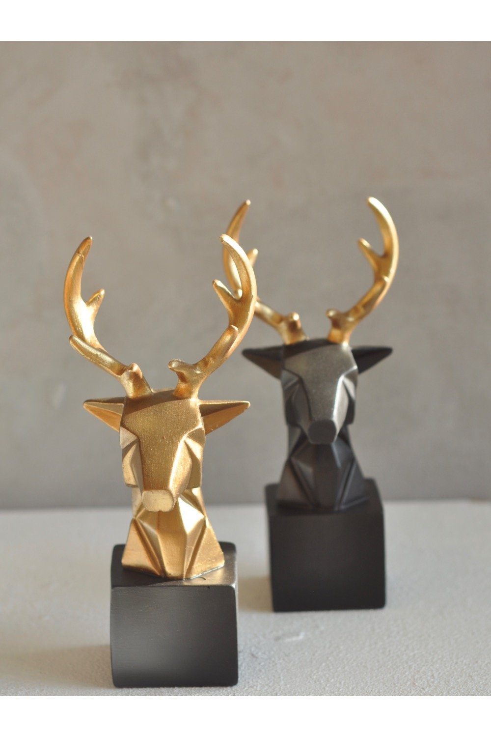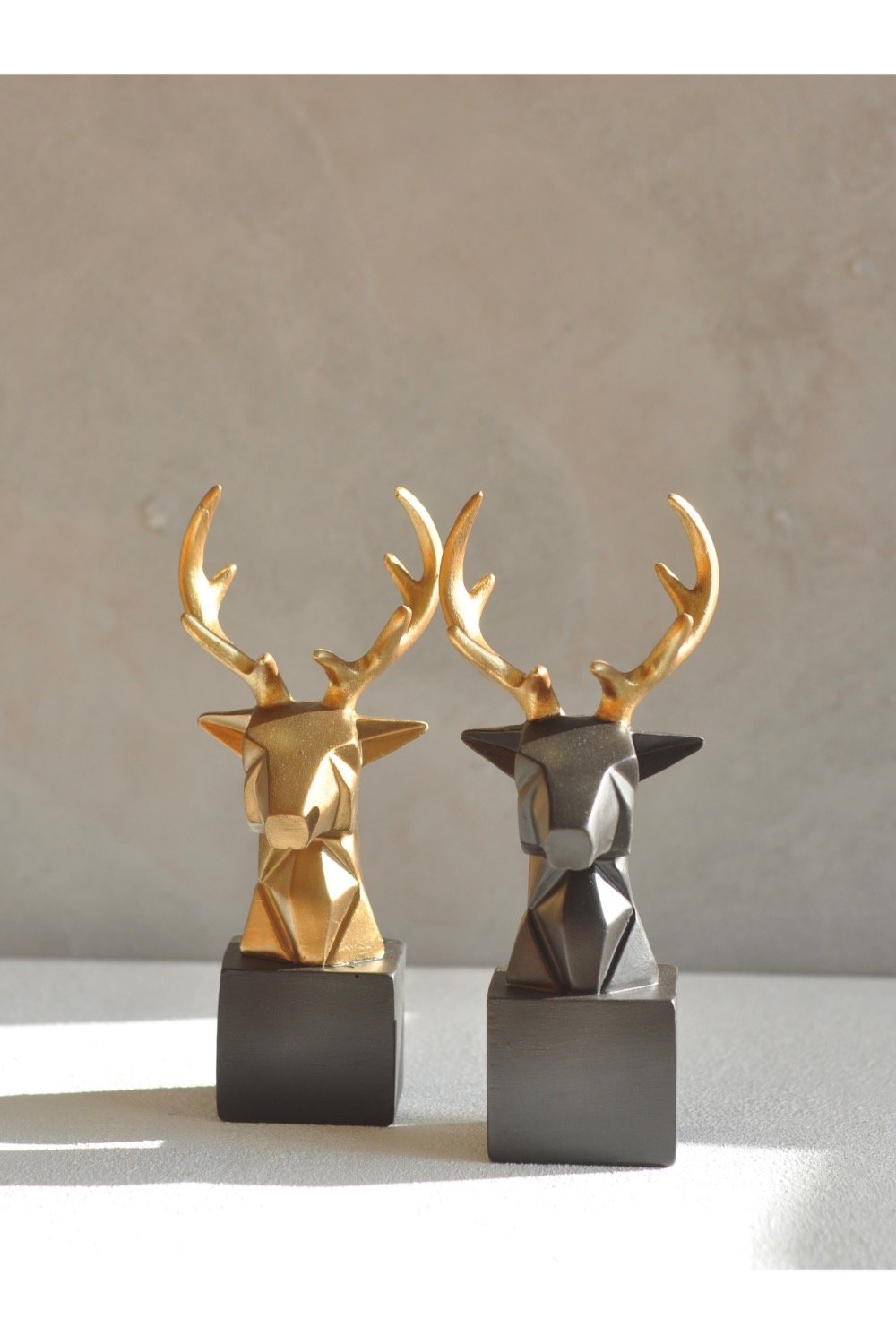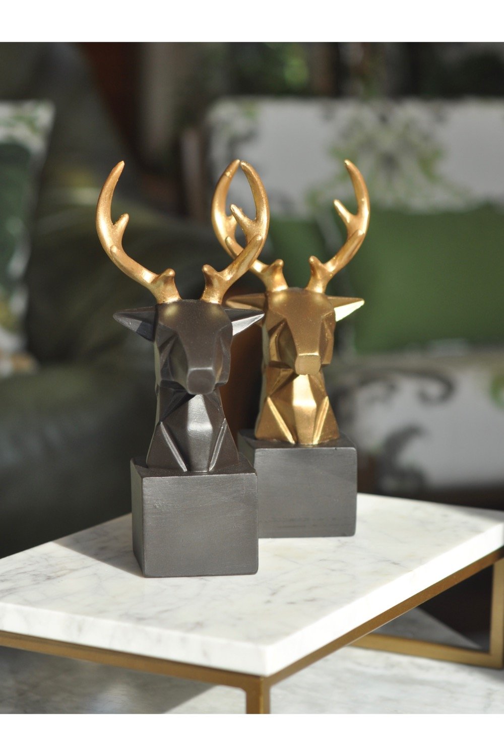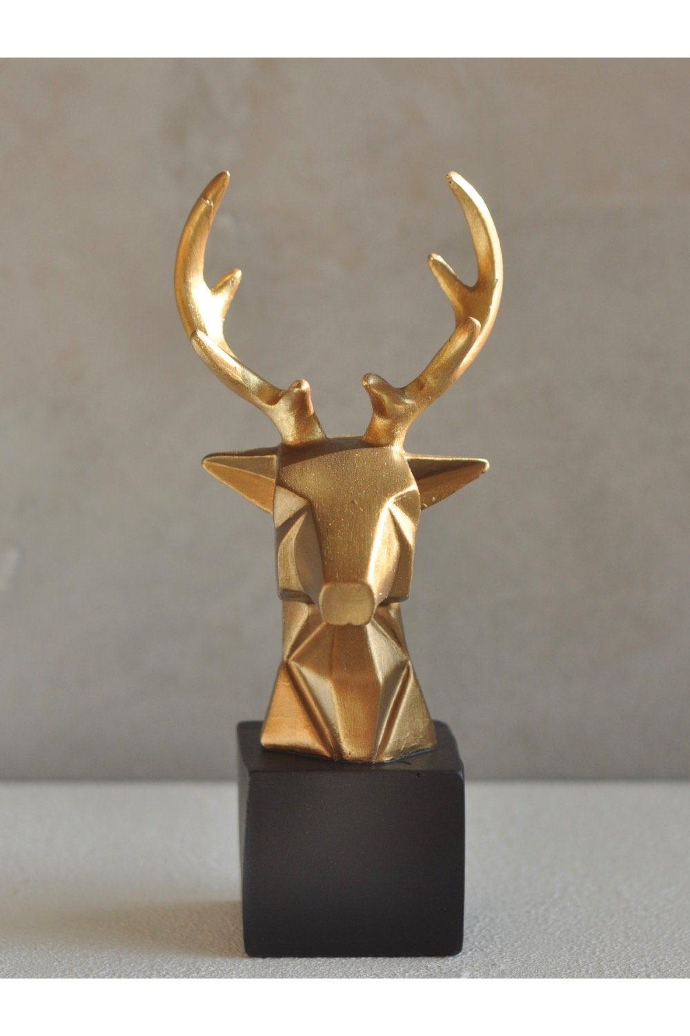 Dea'rt İstanbul Derya Kurdoğlu tasarımı Geyik Büst Obje, görkemli boynuzları, kübik kaidesiyle modern çizgilere sahiptir.
