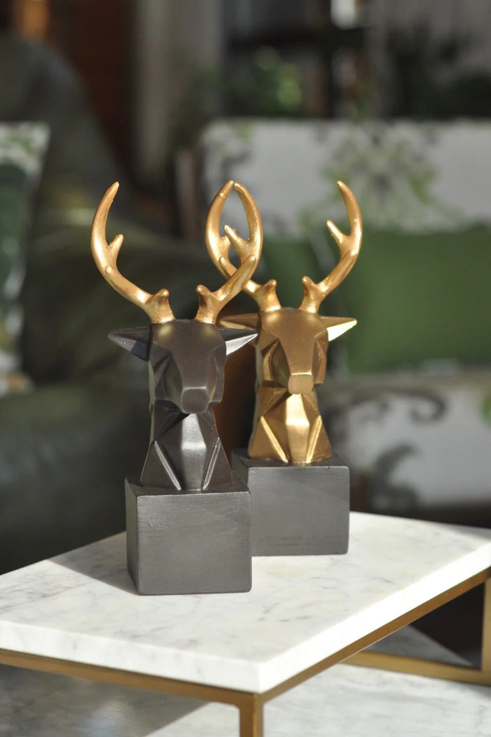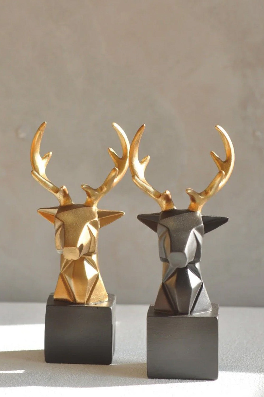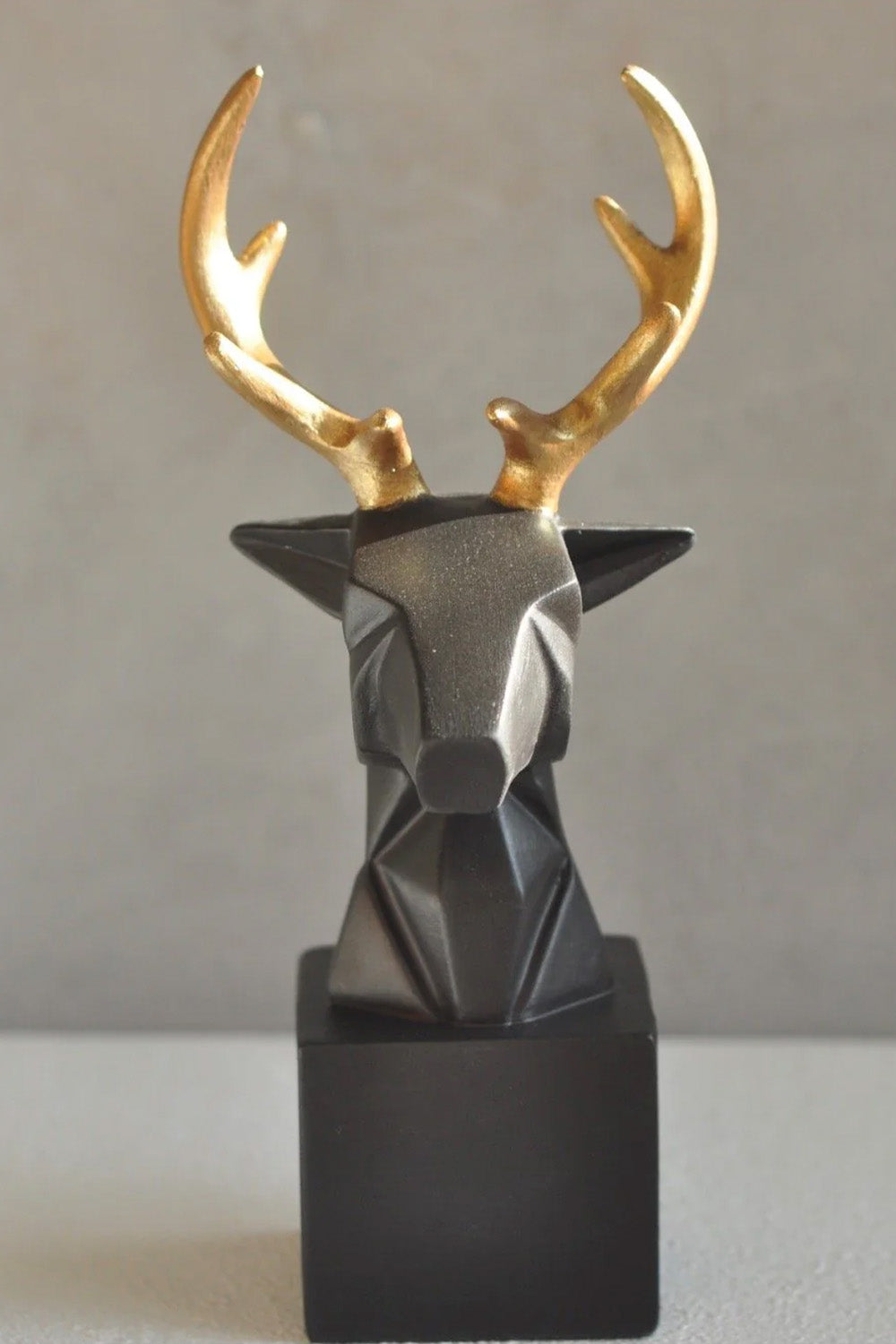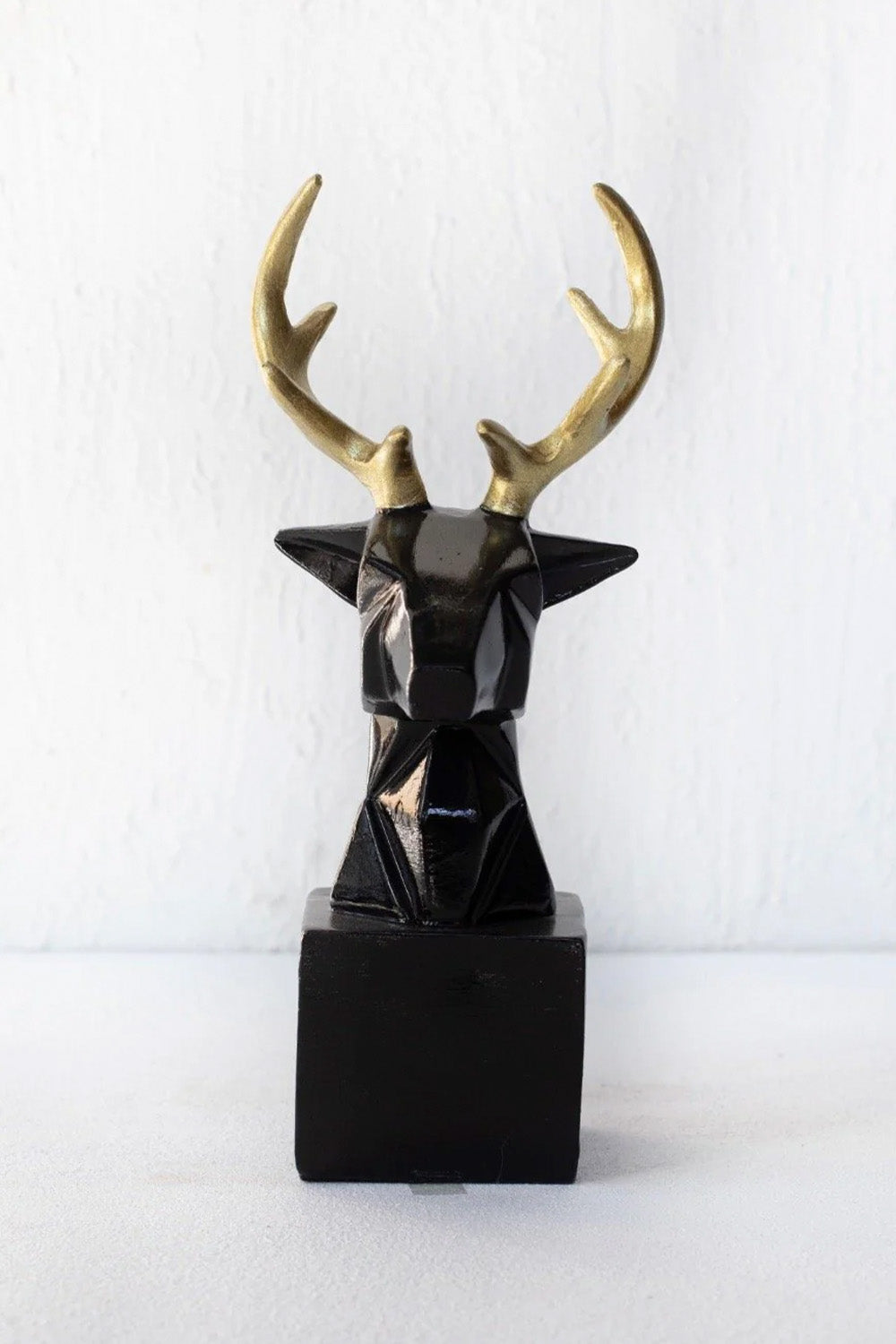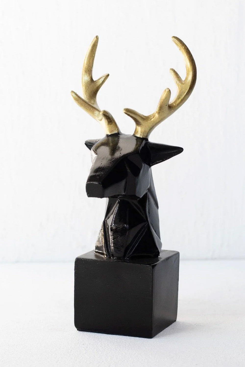 Dea'rt İstanbul Derya Kurdoğlu tasarımı Geyik Büst Obje, görkemli boynuzları, kübik kaidesiyle modern çizgilere sahiptir.