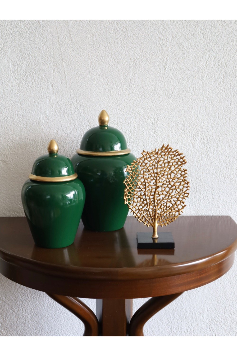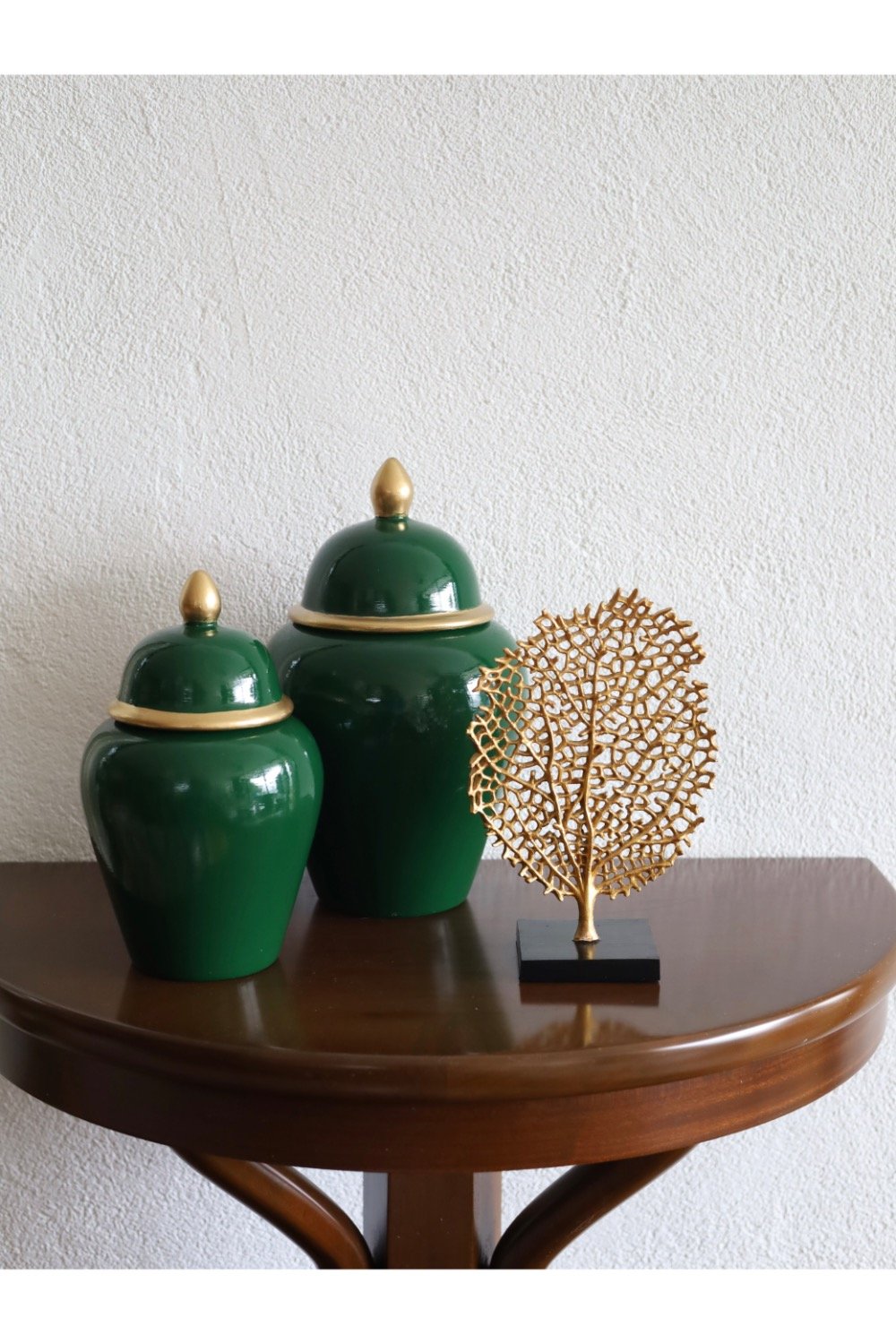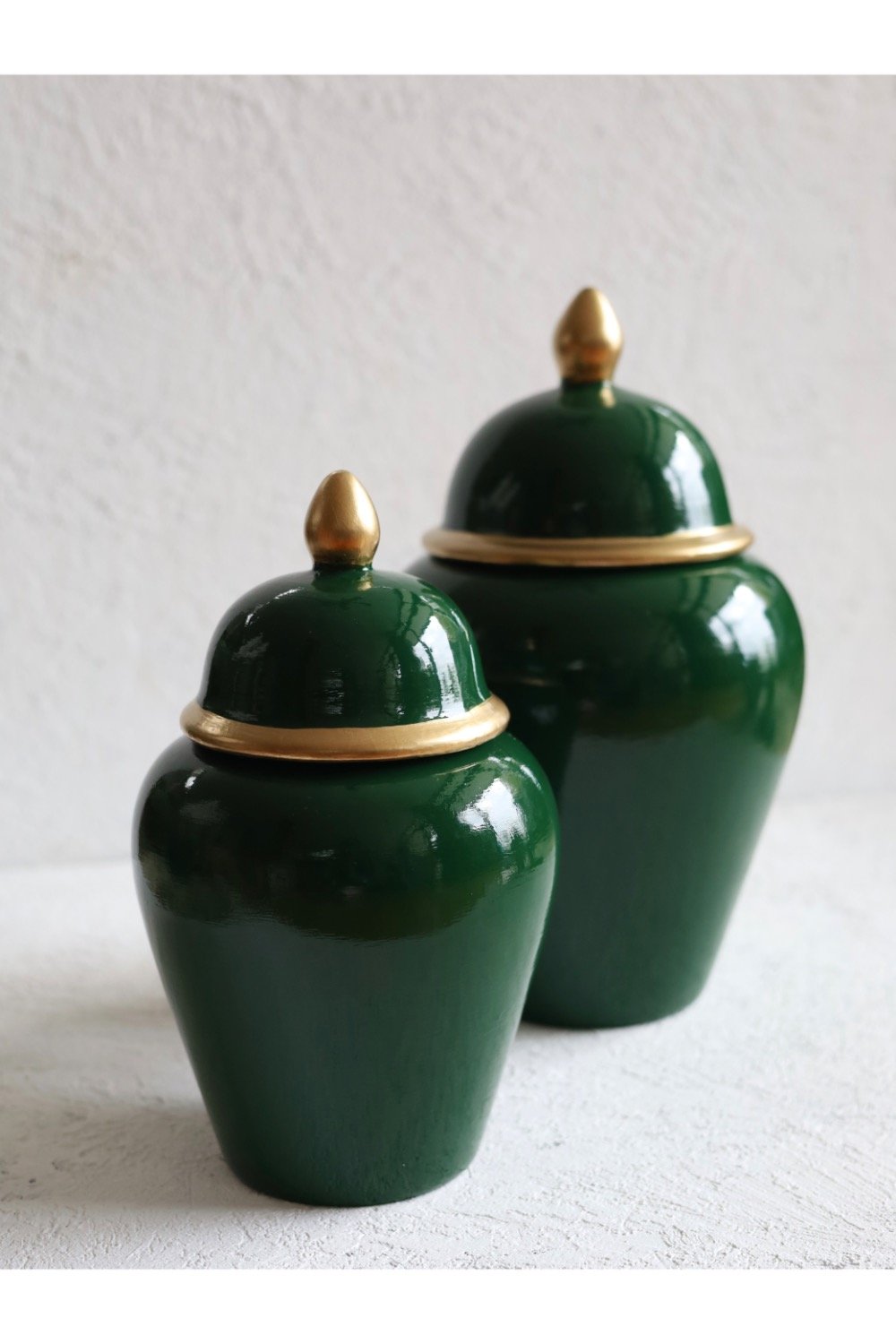 Eşsiz bir işçilikle yapılan ikili seramik küplerimize zümrüt yeşilinin yanında altının asil tonuda eşlik ediyor.
