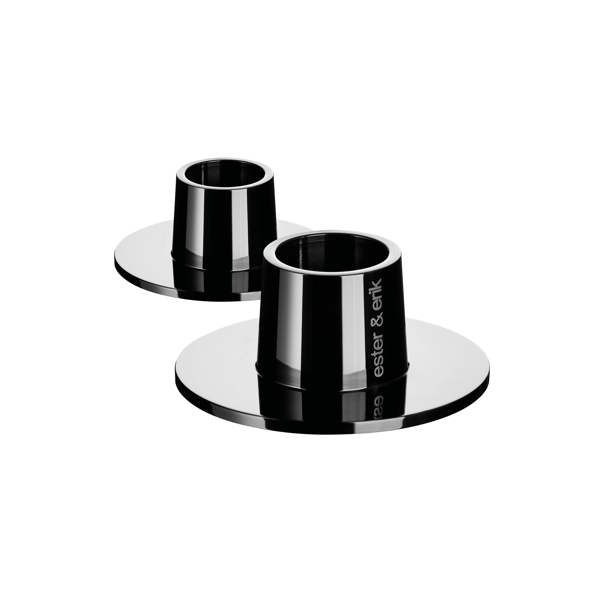 Erik tarafından, Ester ile gümüş evlilik yıldönümleri için tasarlanan klasik ve şık mumluk, zamanla en çok satan aksesuarlarımızdan biri haline geldi. Orta boy, hem konik mumlar için uygundur. Aksesuarlarımızda yüzey işlemi olarak PVD kaplama kullanıyoruz. PVD kaplama, metalleri kaplamak için çevre dostu bir yöntem olup, aynı zamanda kaliteyi ve yüzey bitişini artırır. Bu yöntem öncelikle üst segment saatlerde kullanılmıştır, ancak artık iç mekan ürünlerinde de bu ayrıcalıklı işlem uygulanabilmektedir.