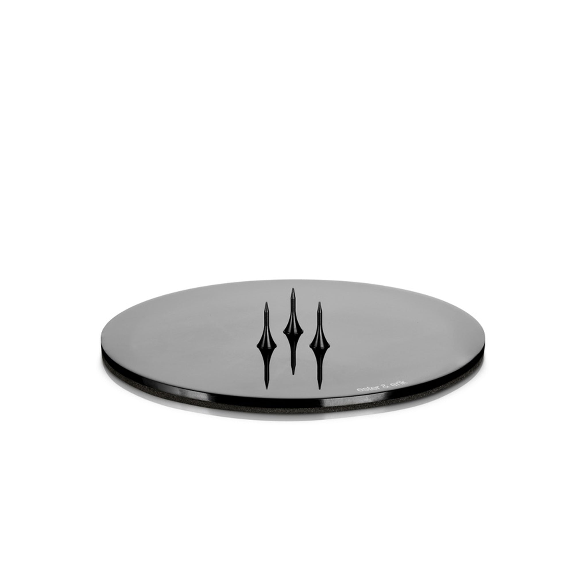 Mum tabakları ağırlıklı olarak konik mumlarımız ve silindir mumlarımız ile birlikte kullanılır. Bu tabaklar ağırlıklı olarak zarif kalın konik mumlar ve silindir mumlarla kullanılmak üzere tasarlanmıştır. Mum, üç küçük çivi ile sabitlenerek güvenli bir şekilde yerinde tutulur. Ayrıca, tabanında bulunan köpük kaplama, alt yüzeyi koruma amacı taşır. Aksesuarlarımızda yüzey işlemi olarak PVD kaplama kullanıyoruz. PVD kaplama, metalleri kaplamak için çevre dostu bir yöntem olup, aynı zamanda kaliteyi ve yüzey bitişini artırır. Bu yöntem öncelikle üst segment saatlerde kullanılmıştır, ancak artık iç mekan ürünlerinde de bu ayrıcalıklı işlem uygulanabilmektedir.