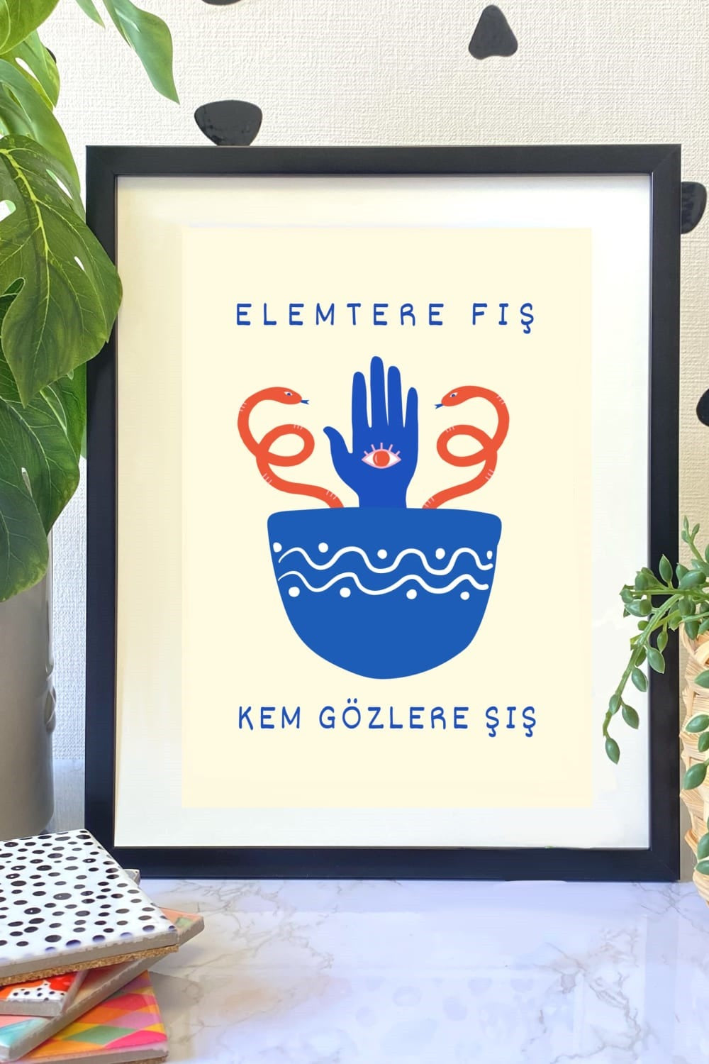 Elemtere Fiş Kem Gözlere Şiş! - Koleksiyonumuzun ve sizin favoriniz olan "KEM GÖZ SAVAR", baskıda yer alan özel bir tasarıma ve mavi renkli tipografi'ye sahiptir.