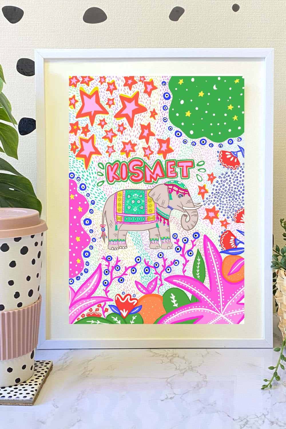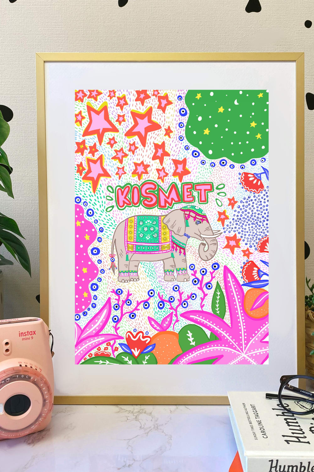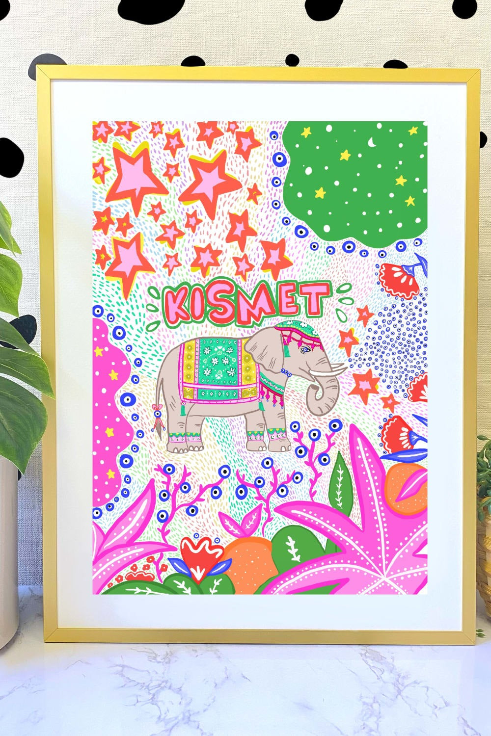 KISMET! - Kısmetinizin açılması sağlar, pozitif enerji verir :) Kısmet baskımızda özel tasarlanmış fil illüstrasyonu ve desenler vardır.