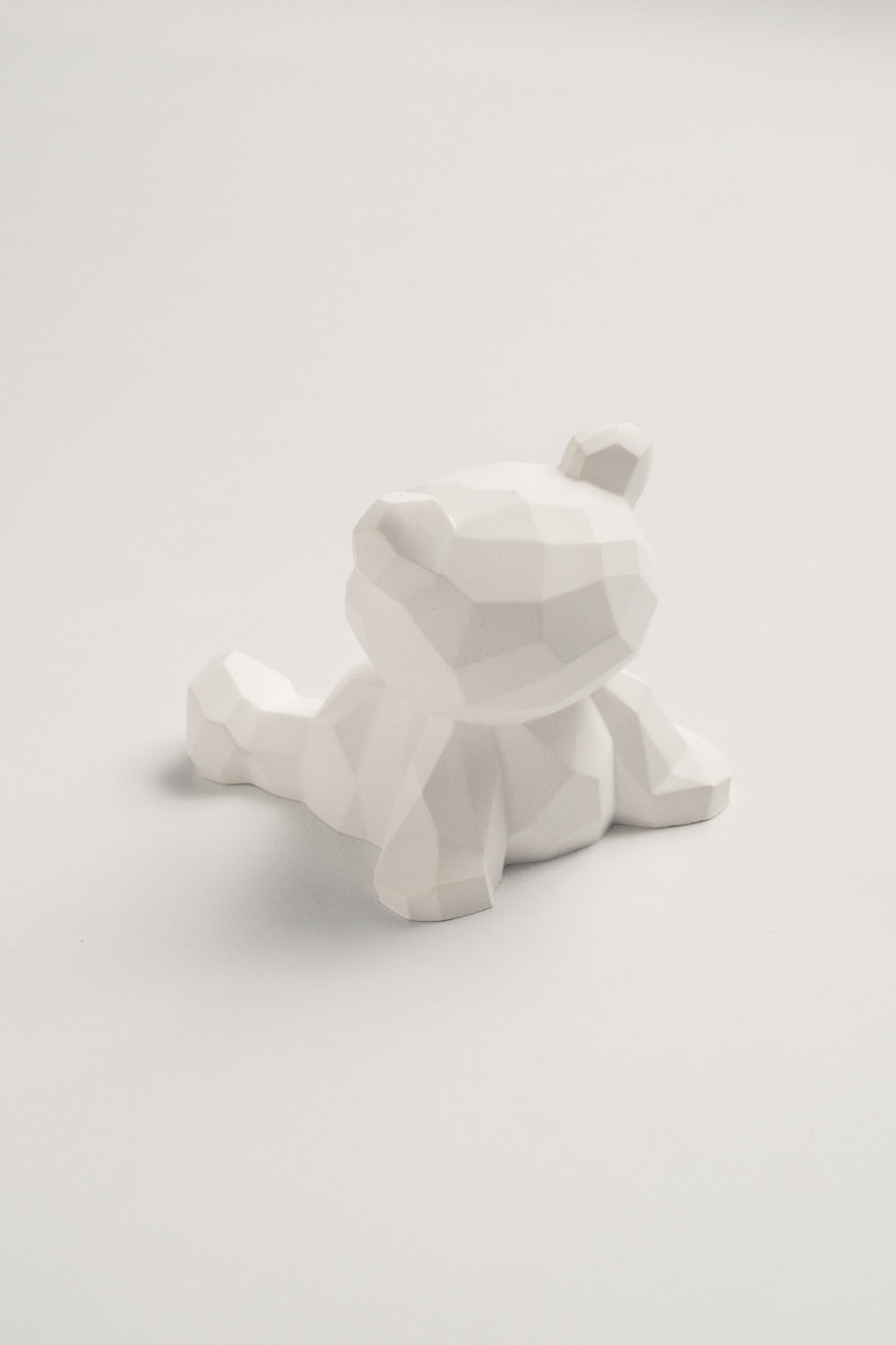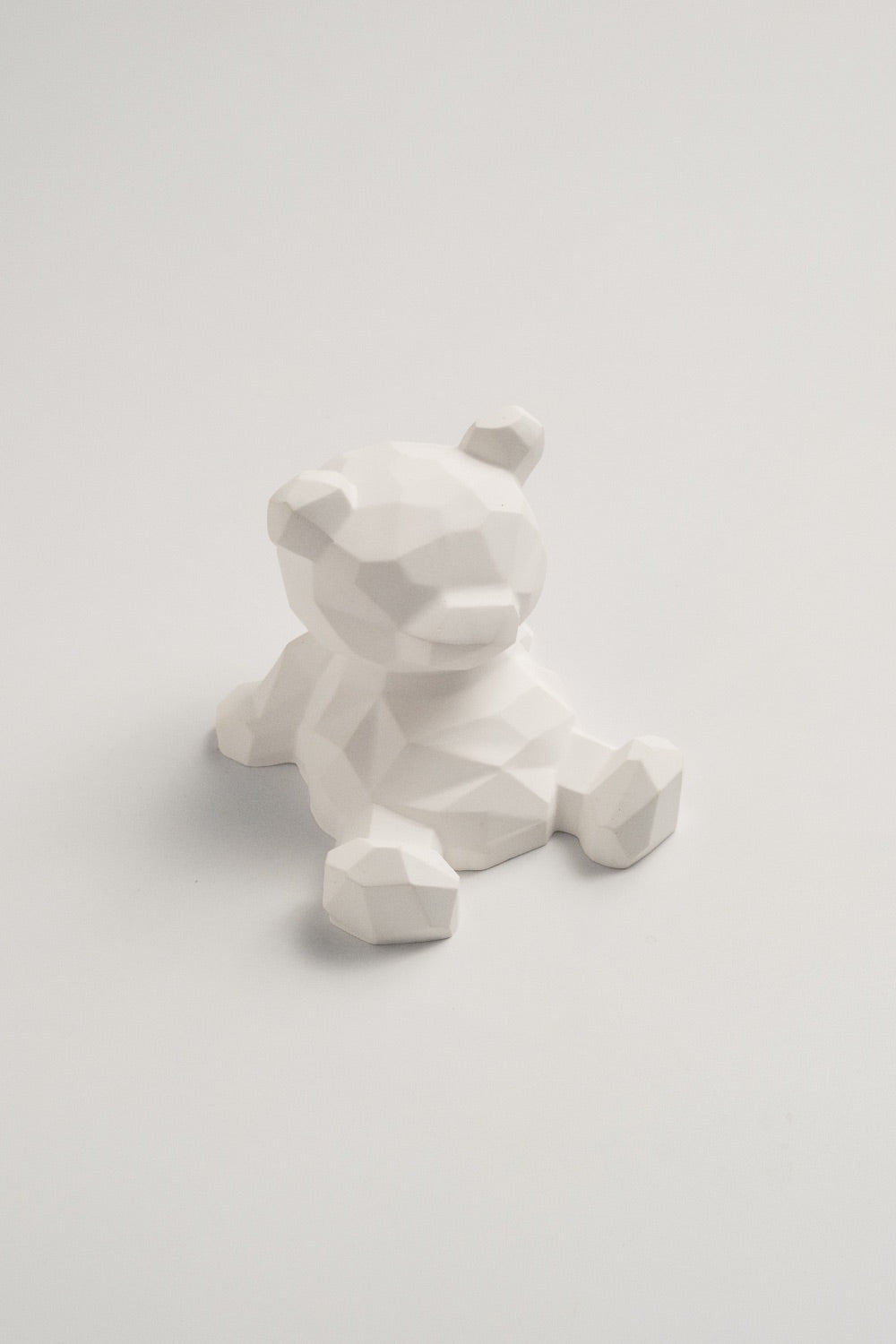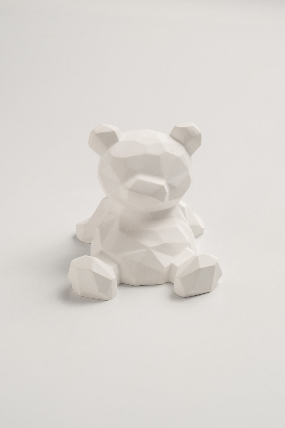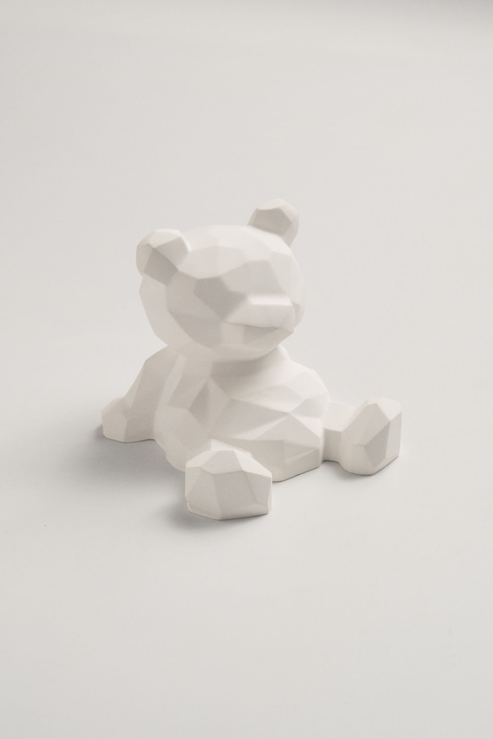 Minimal ve geometrik hatlarla tasarlanmış bu ayıcık obje, sade formu ve heykelimsi duruşuyla her ortama modern bir dokunuş katar.