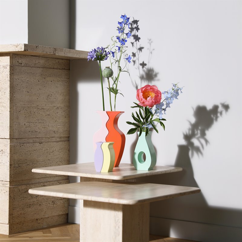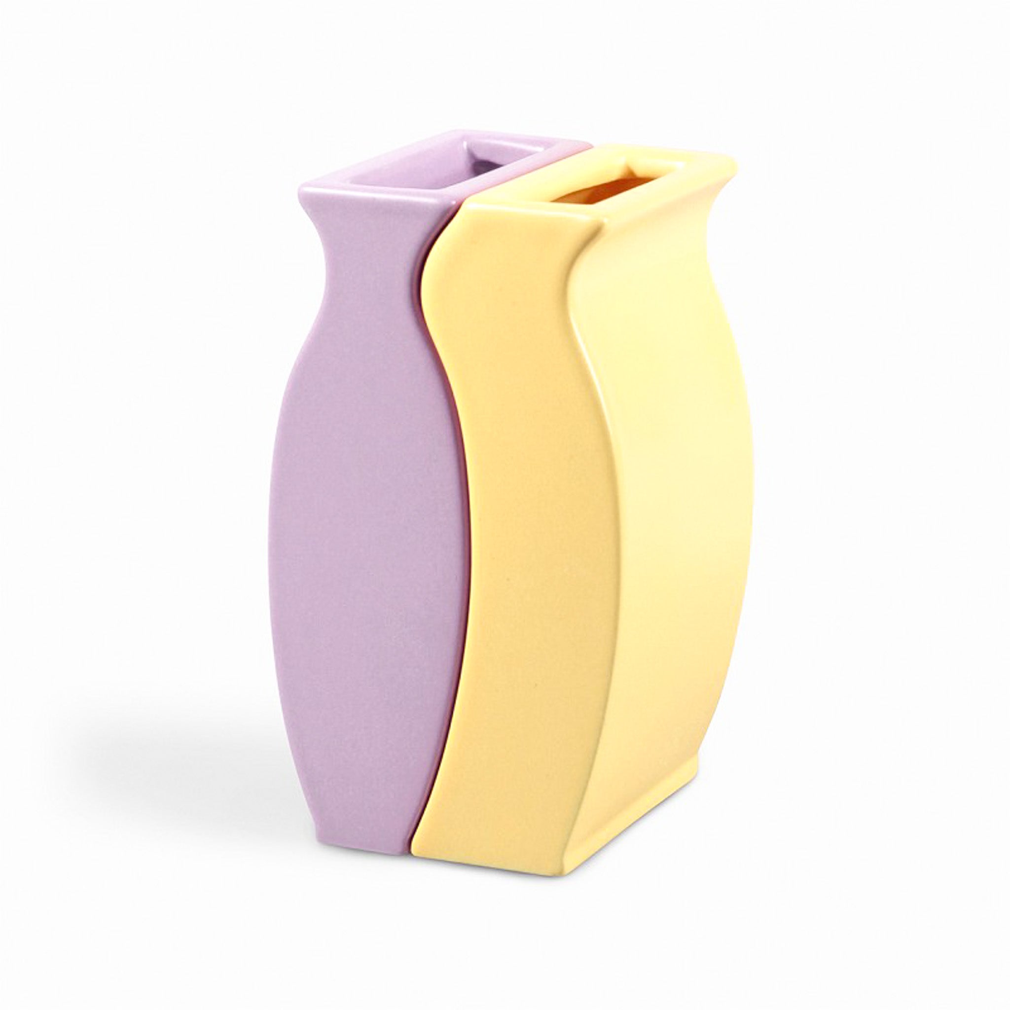 Bu iki vazo, birlikte mükemmel bir uyum yakalarken, ayrı ayrı da dekoratif bir kullanım sunar. Parlak renkleri mekânınıza canlılık katar ve iç mekanınızı aydınlatır. Görünümü tamamlamak için içine neşeli çiçekler yerleştirebilirsiniz.