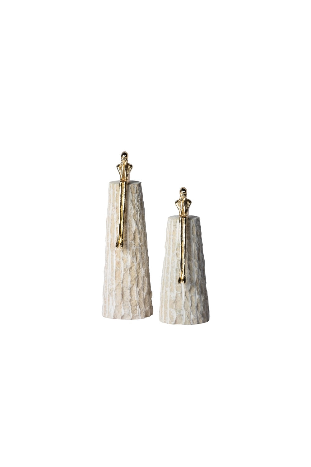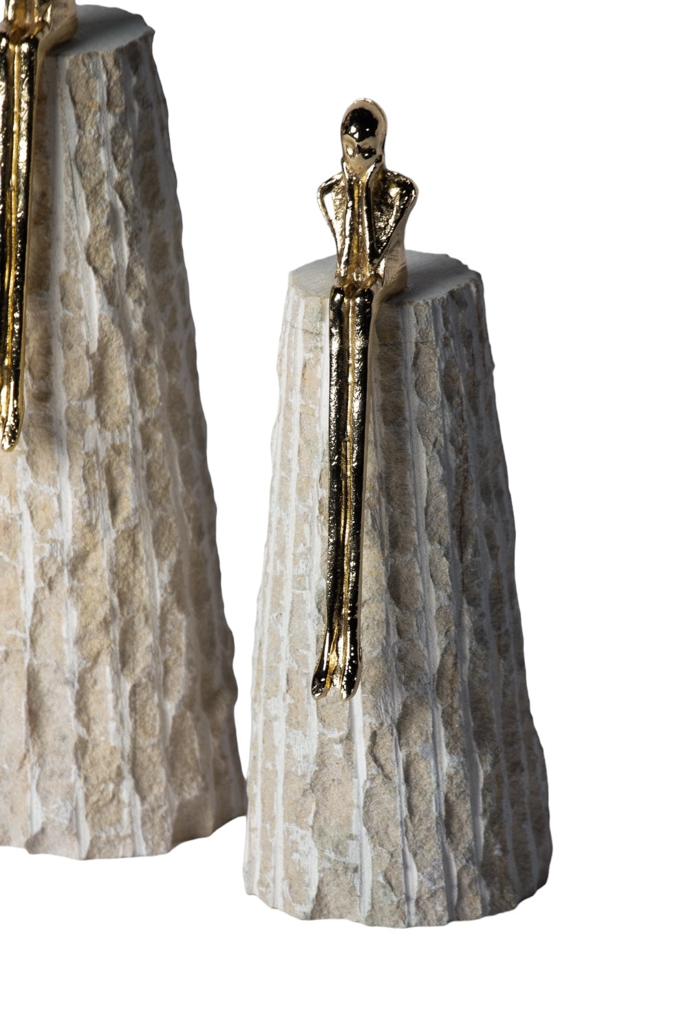 Krem Doğal Taş Üstü 2'li Pirinç Oturan Adam Dekoratif Obje
