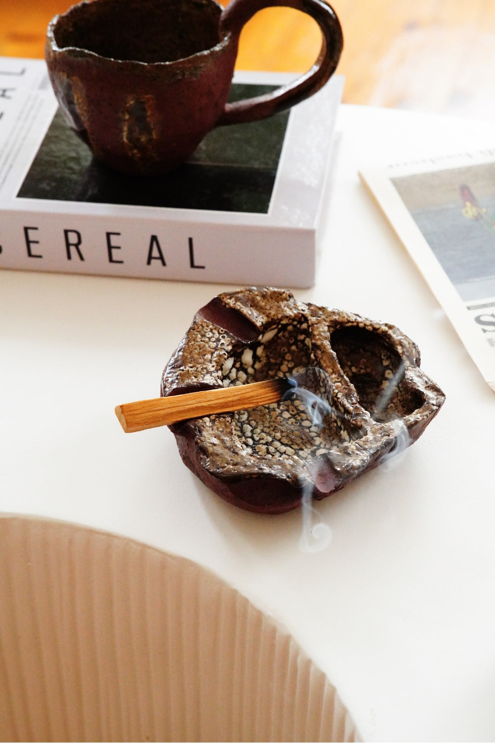 Raw ve primitif tasarıma sahip bu küllük, bol şamotlu ve dokulu yapısıyla etkileyici bir parça.