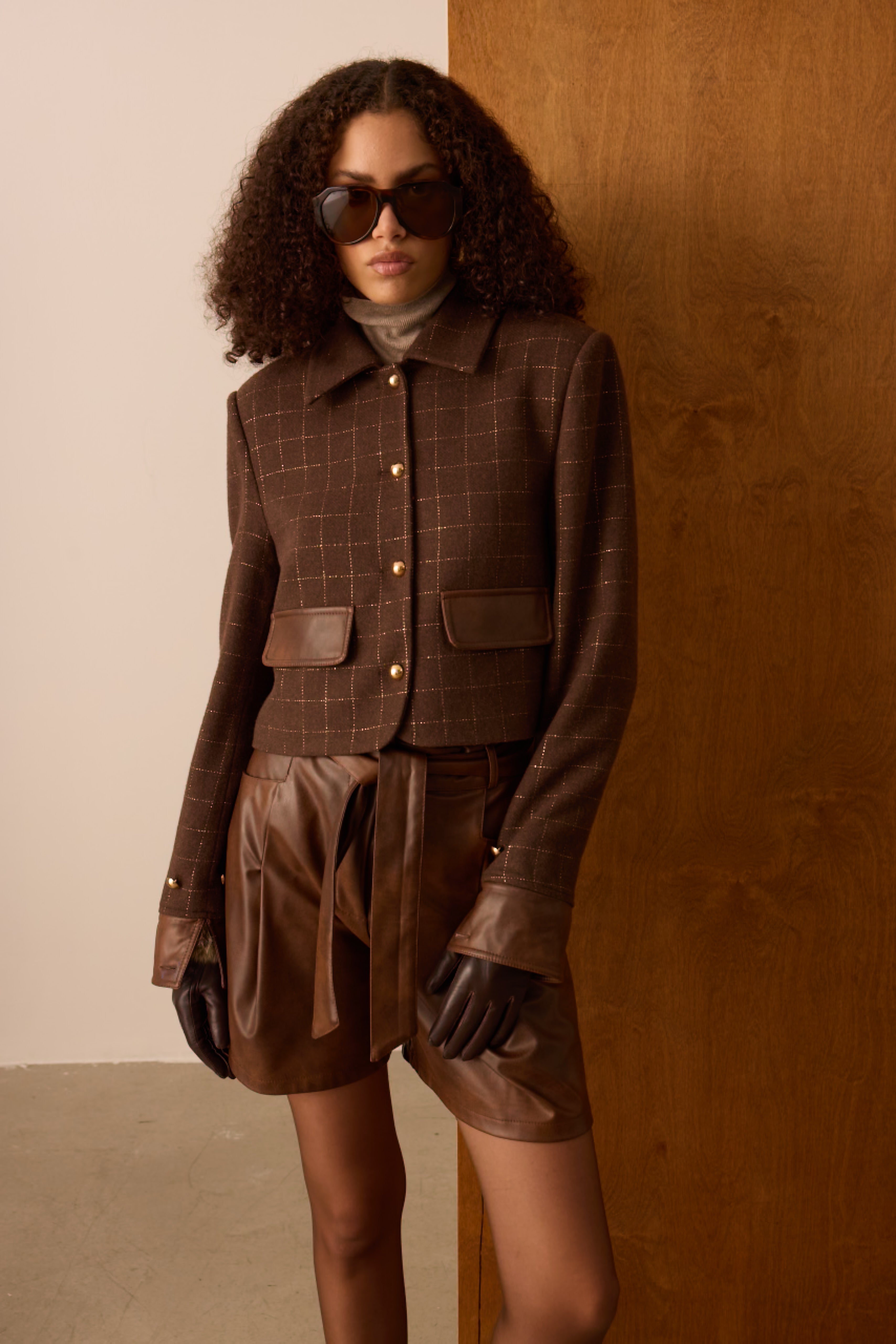 Detaylar: Gömlek yaka, tasarım düğmeli, deri detaylı