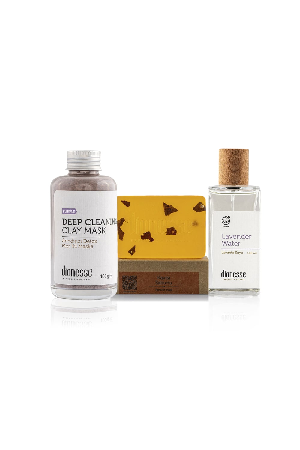 İçeriğindeki Ürünler: Mor Kil Maske + Lavanta Suyu + Kayısı Sabunu