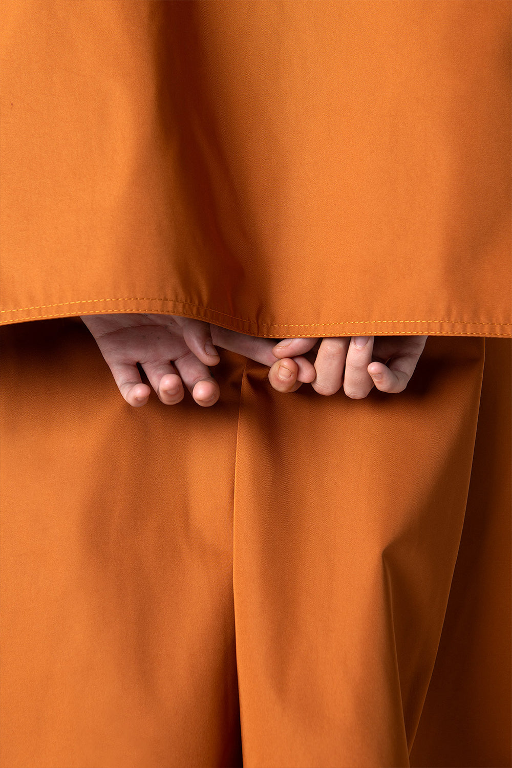 Özel olarak tasarlanmış deseni, hem iç biyesinde hem de bu ürüne özel etiketlerde kullanılmıştır. Asimetrik parçalı yapısı sayesinde esnek kullanım olanağı sağlar. Üzerindeki asimetrik parça çıkarılabilir. Su geçirmez kumaşı, olumsuz hava koşullarında bile kullanım kolaylığı sunmaktadır.