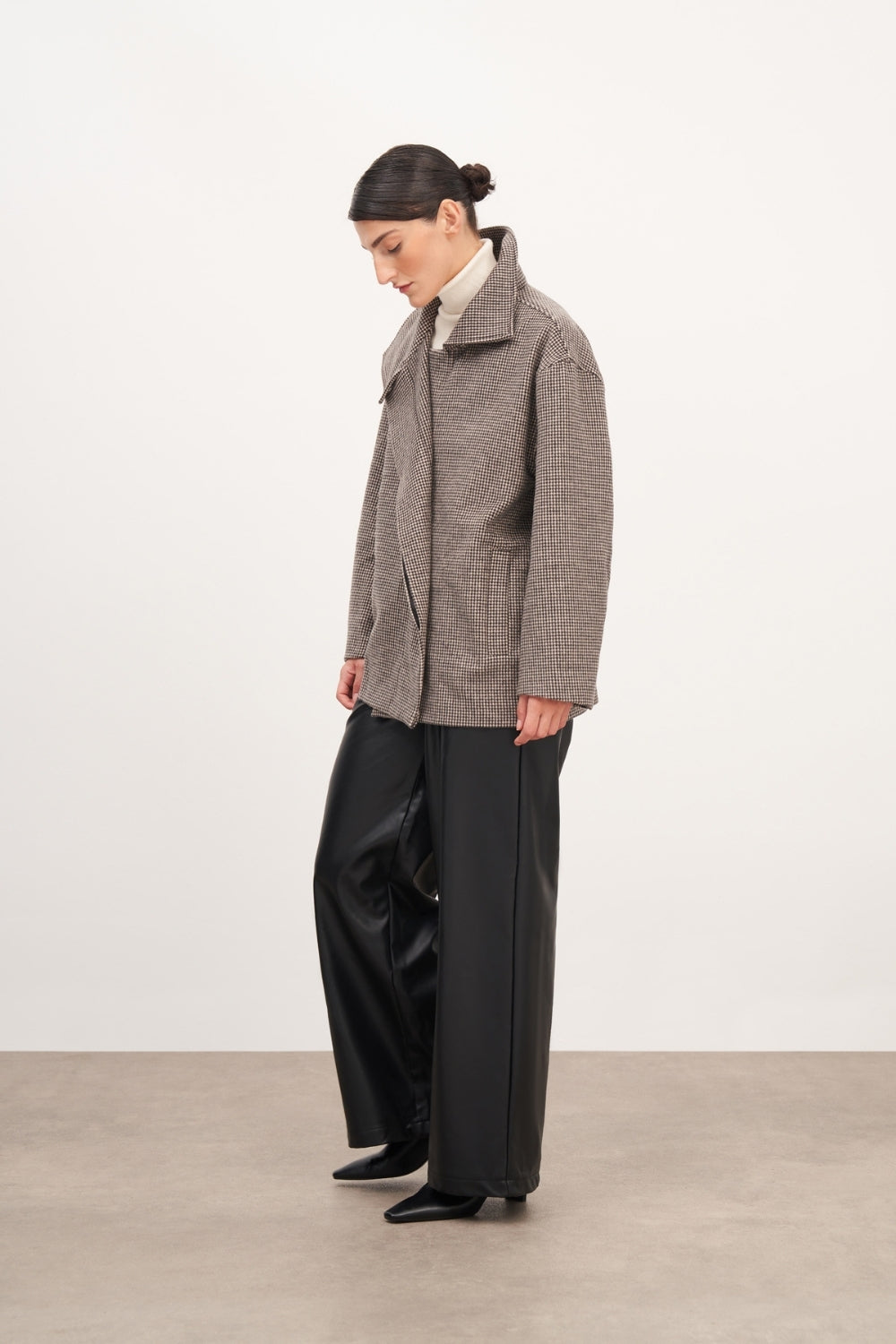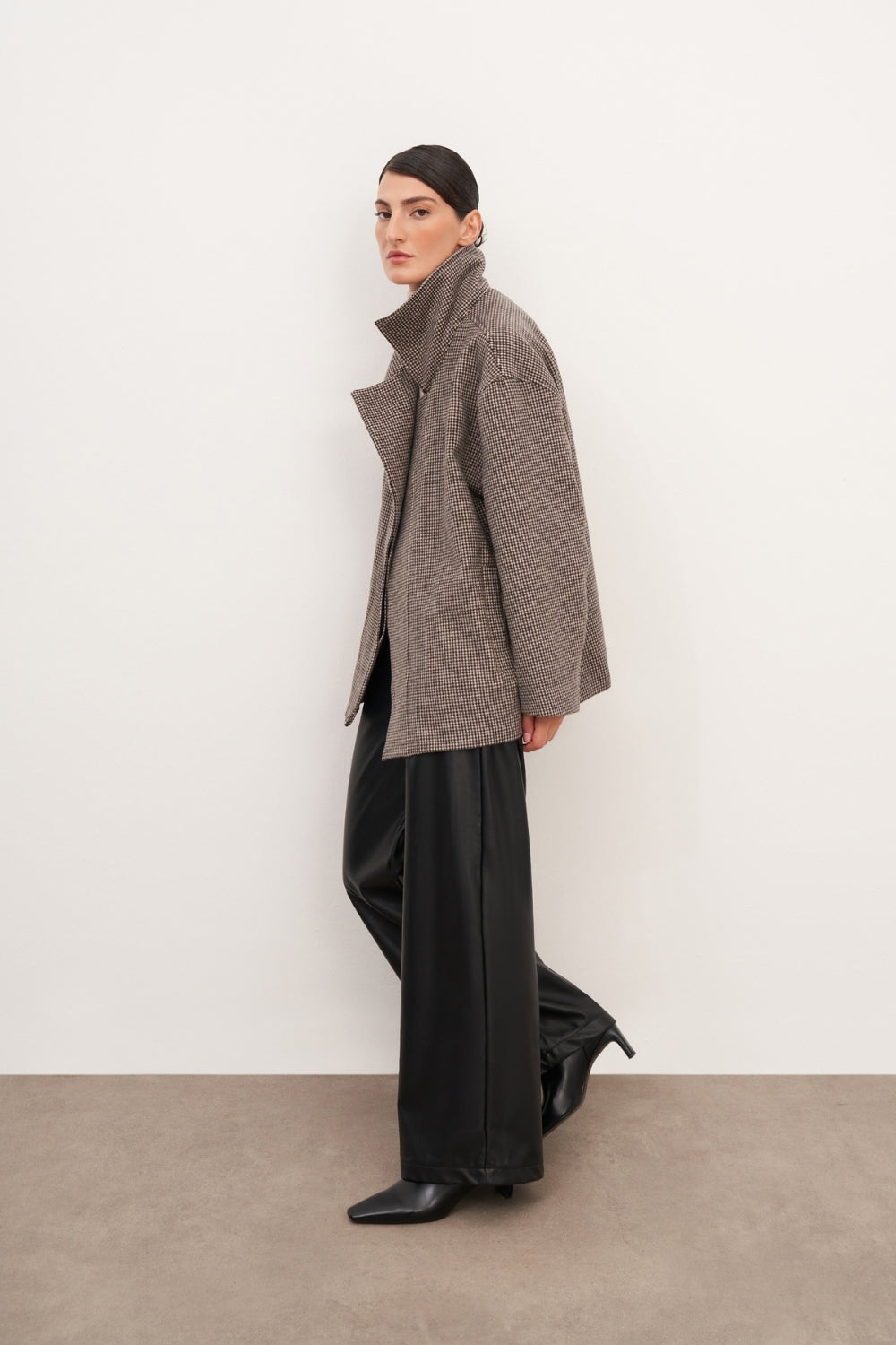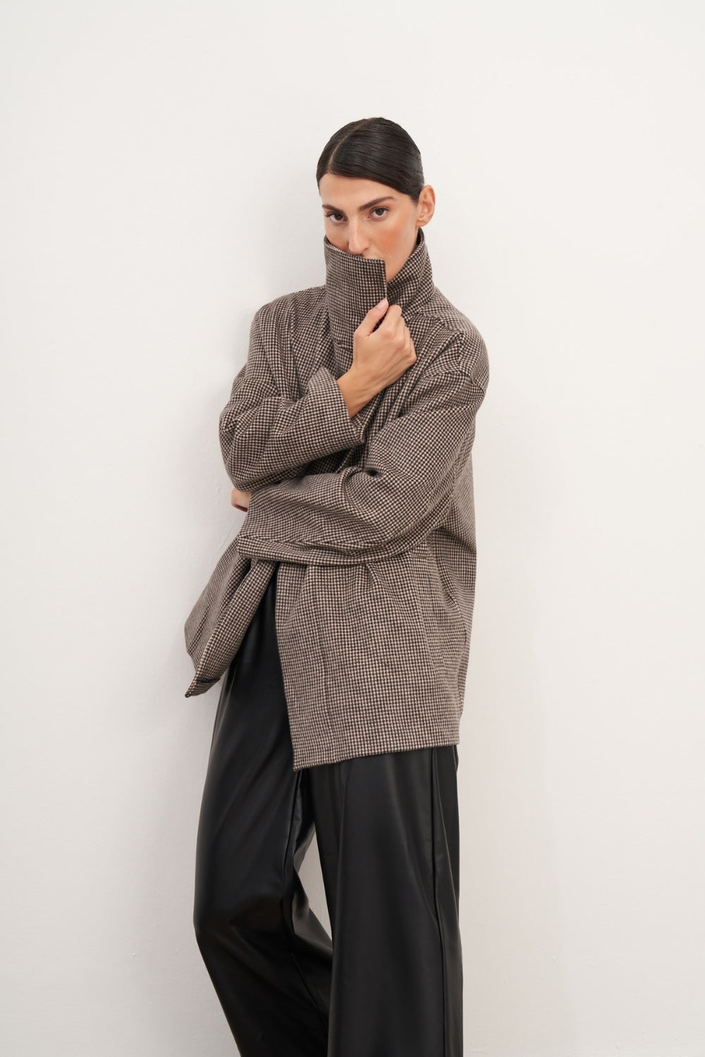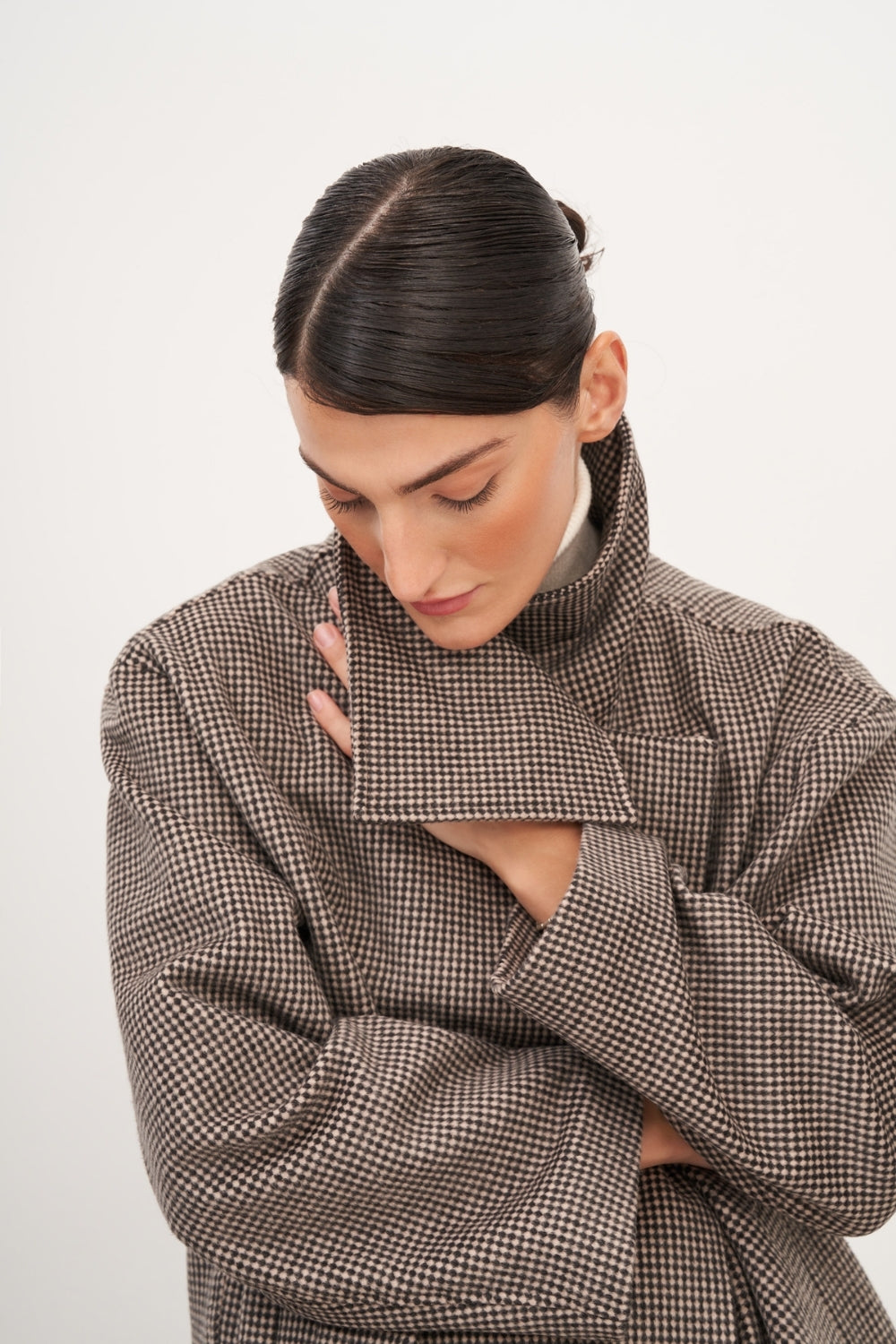 WINGCOTT Ekoseli Yüksek Yaka Kaşe Kaban