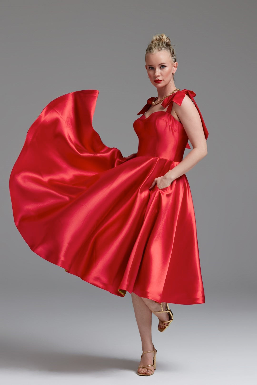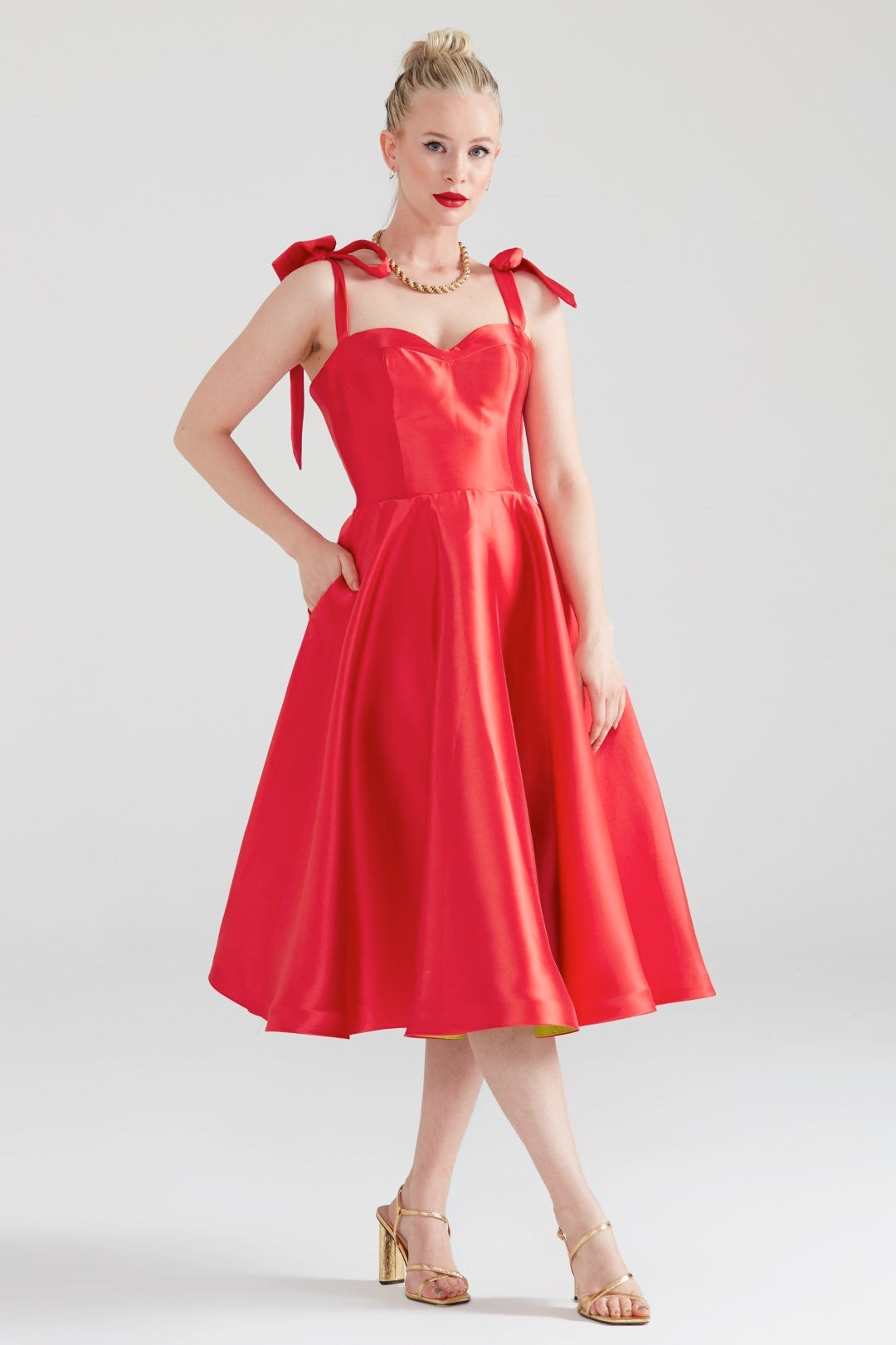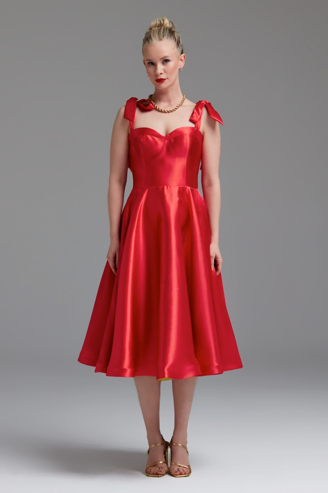 Cutest Ribbon Kurdele Detaylı Kalp Yaka Midi Elbise Kırmızı